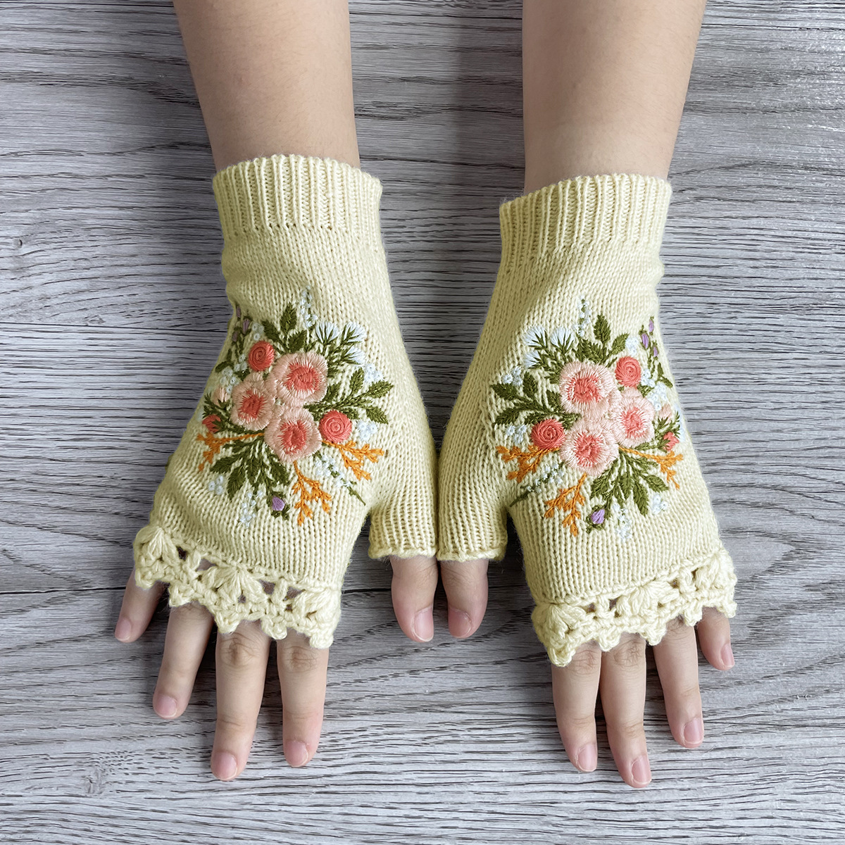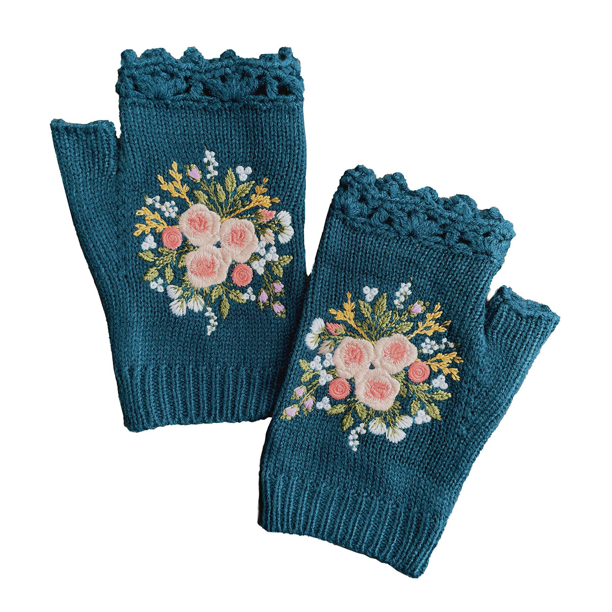 국경 간 아마존 독립 역 새로운 여성 가을과 겨울 수제 크로 셰 뜨개질 따뜻한 자수 꽃 반 손가락 니트 장갑