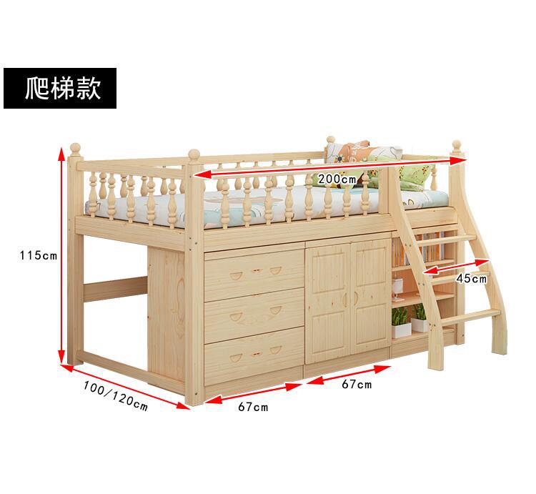 테이블 어린이 콤비네이션 침대 책상 높은 반 단단한 나무 다기능 옷장이있는 높은 소나무 공간 침대스토어 가기