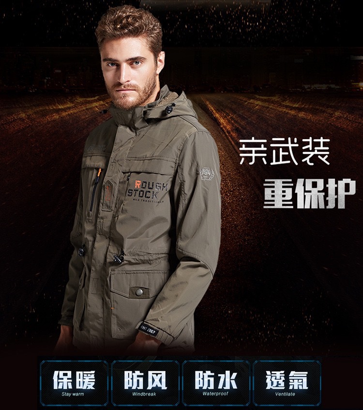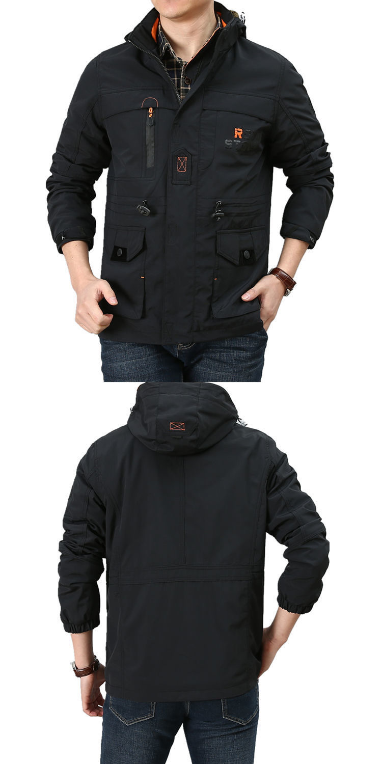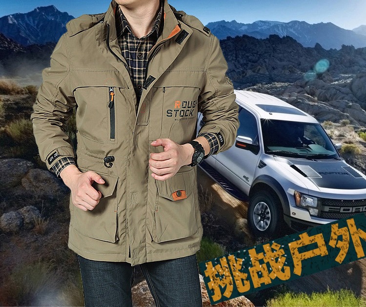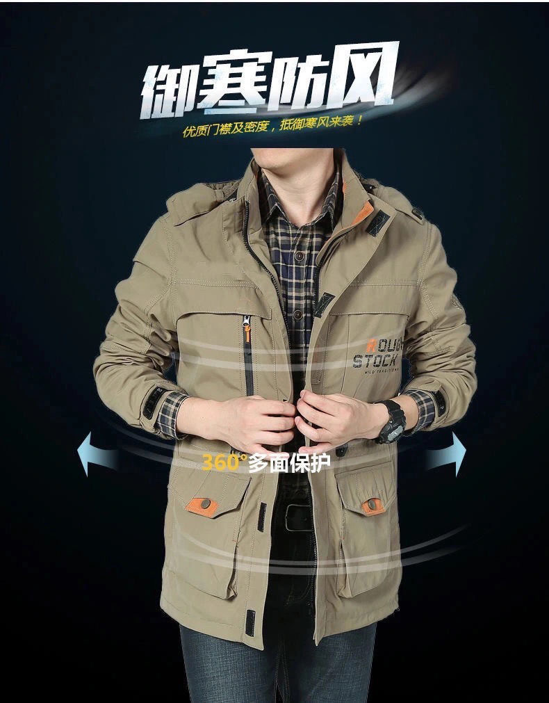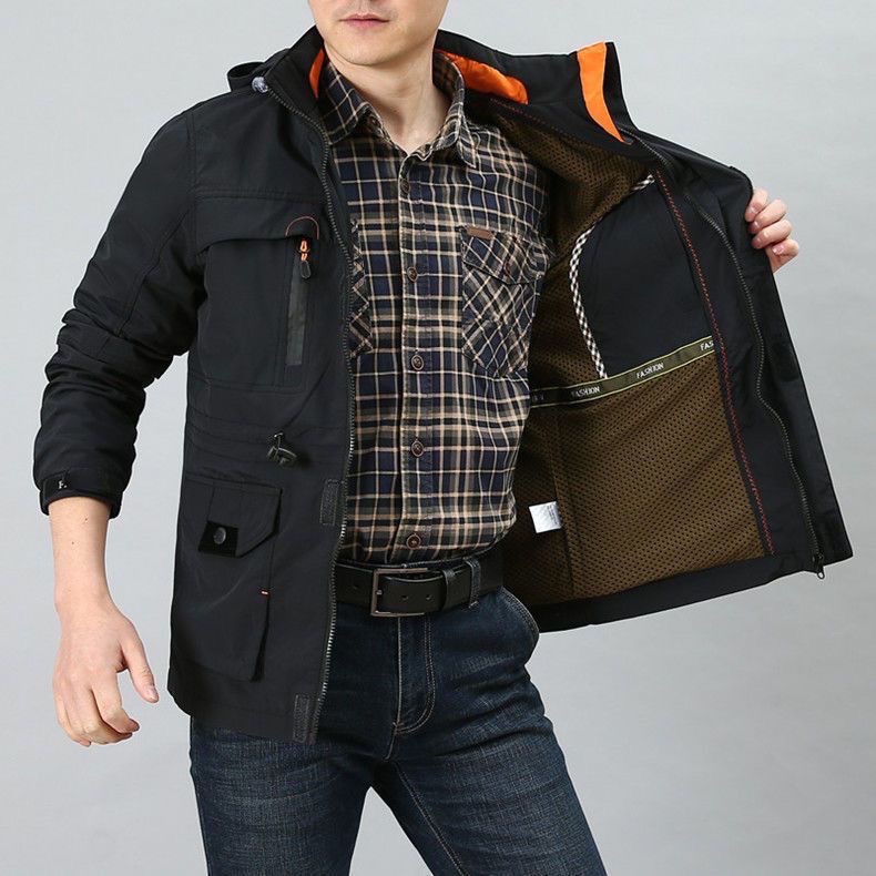 봄과 가을 얇은 남성 자켓 야외 방풍 방수 등산 세트 플러스 사이즈 멀티 포켓 재킷 086스토어 가기