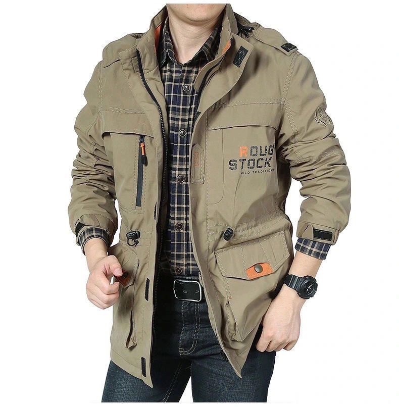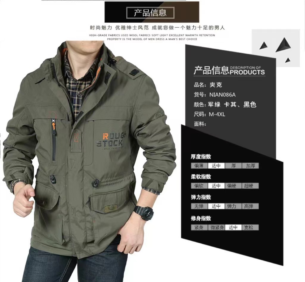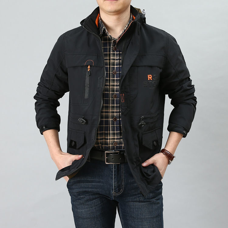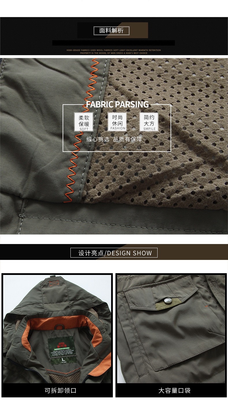 봄과 가을 얇은 남성 자켓 야외 방풍 방수 등산 세트 플러스 사이즈 멀티 포켓 재킷 086스토어 가기