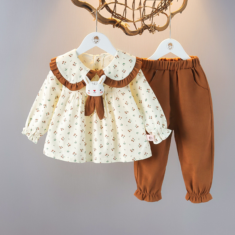 소녀의 서양 스타일 가을 원피스 꽃 투피스 세트 1-2-3 세 아기 소녀의 만화 세트 아기의 가을 복장스토어 가기