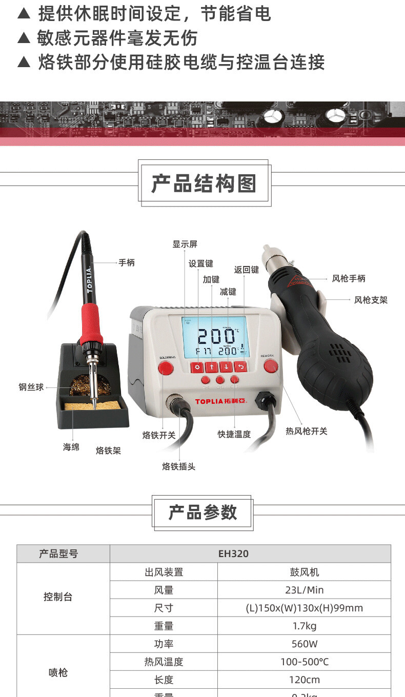 Torria 다기능 디지털 디스플레이 전기 납땜 인두 정전기 방지 지능형 투인원 유지 보수 납땜 스테이션 EH320