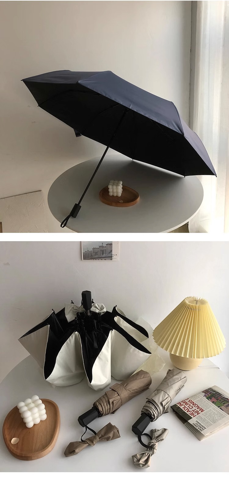 맑고 비가 오는 이중 사용 여성용 자외선 차단제 UV 보호 태양 우산 작은 차양 우산 사용자 정의 로고 블랙 접착제 높은 색상 값 in스토어 가기