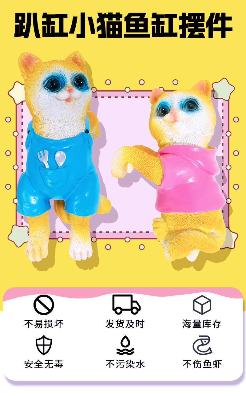 수지로 만든 누워있는 고양이 어항 장식품, 수족관 장식품, 의상을 입은 고양이 신상품스토어 가기