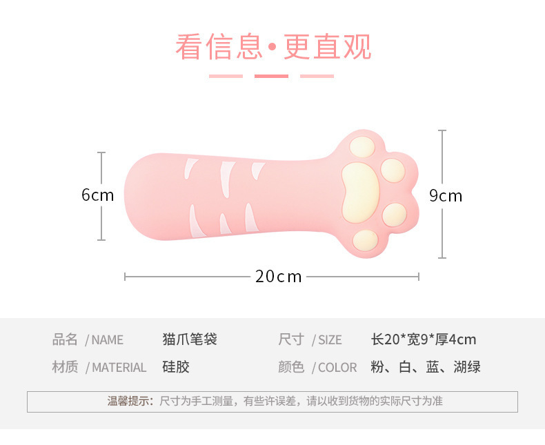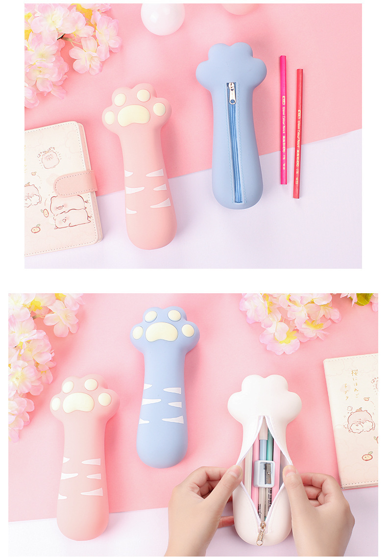 레톤 실리콘 고양이 발 모양 필통 도매 귀여운 문구함 만화 연필통 수납 가방 학생용 문구 가방 맞춤 제작스토어 가기