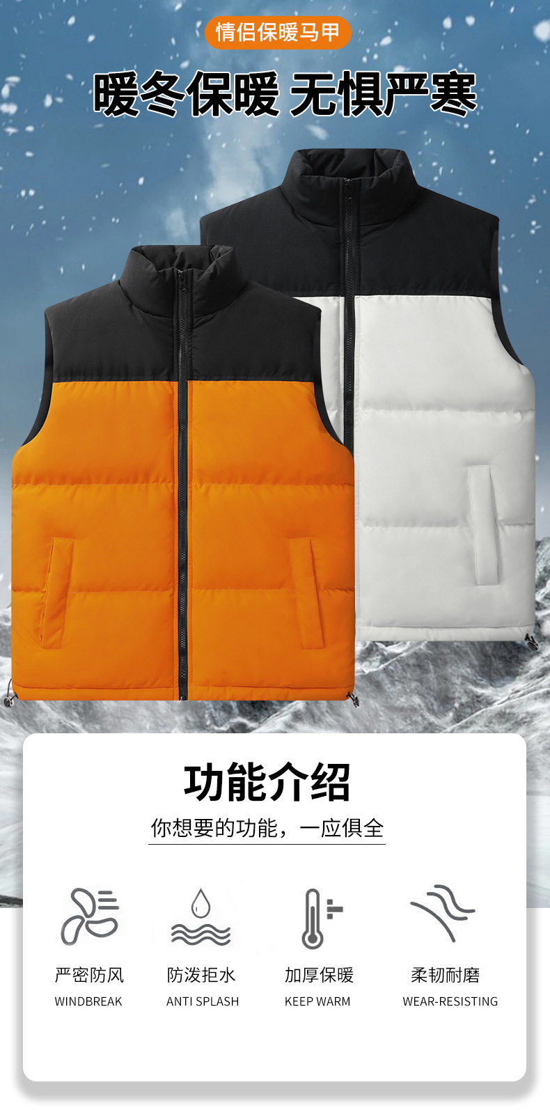 겨울 새로운 스탠드 칼라 민소매 조끼 남자의 커플 방한 따뜻한 캐주얼 탑 느슨한 플러스 사이즈 스탠드 칼라 재킷
