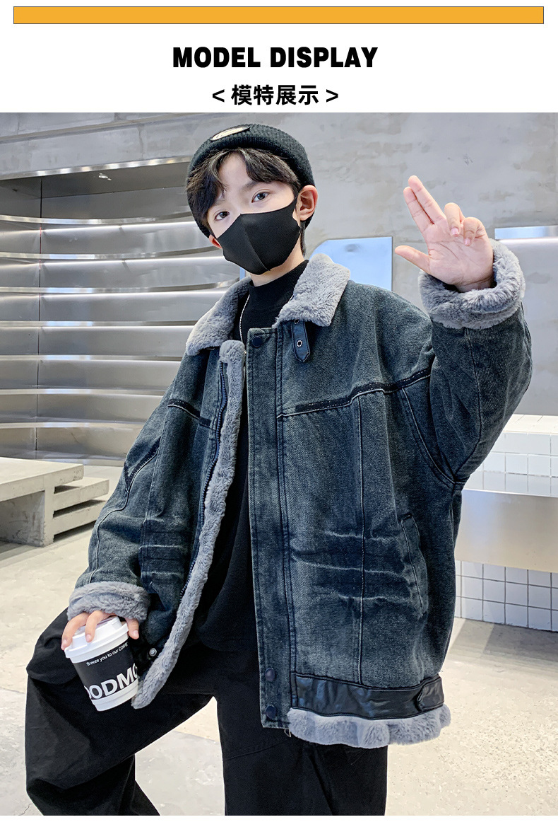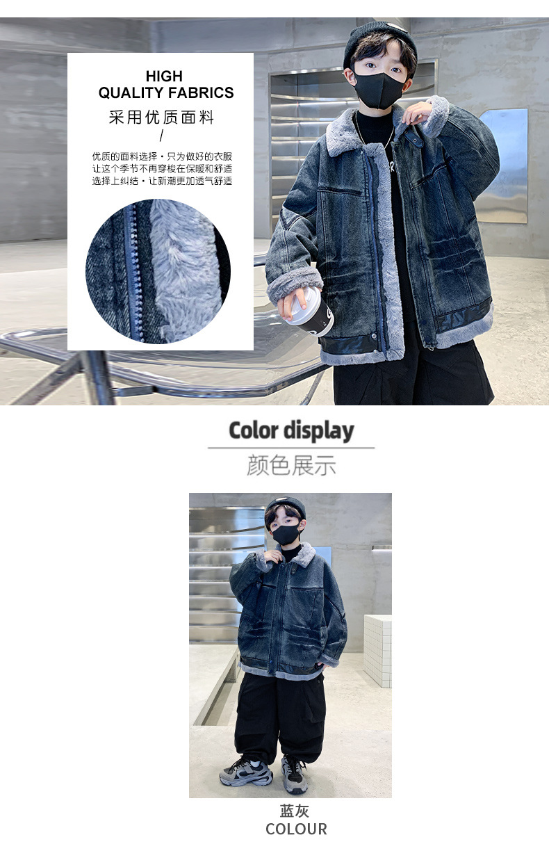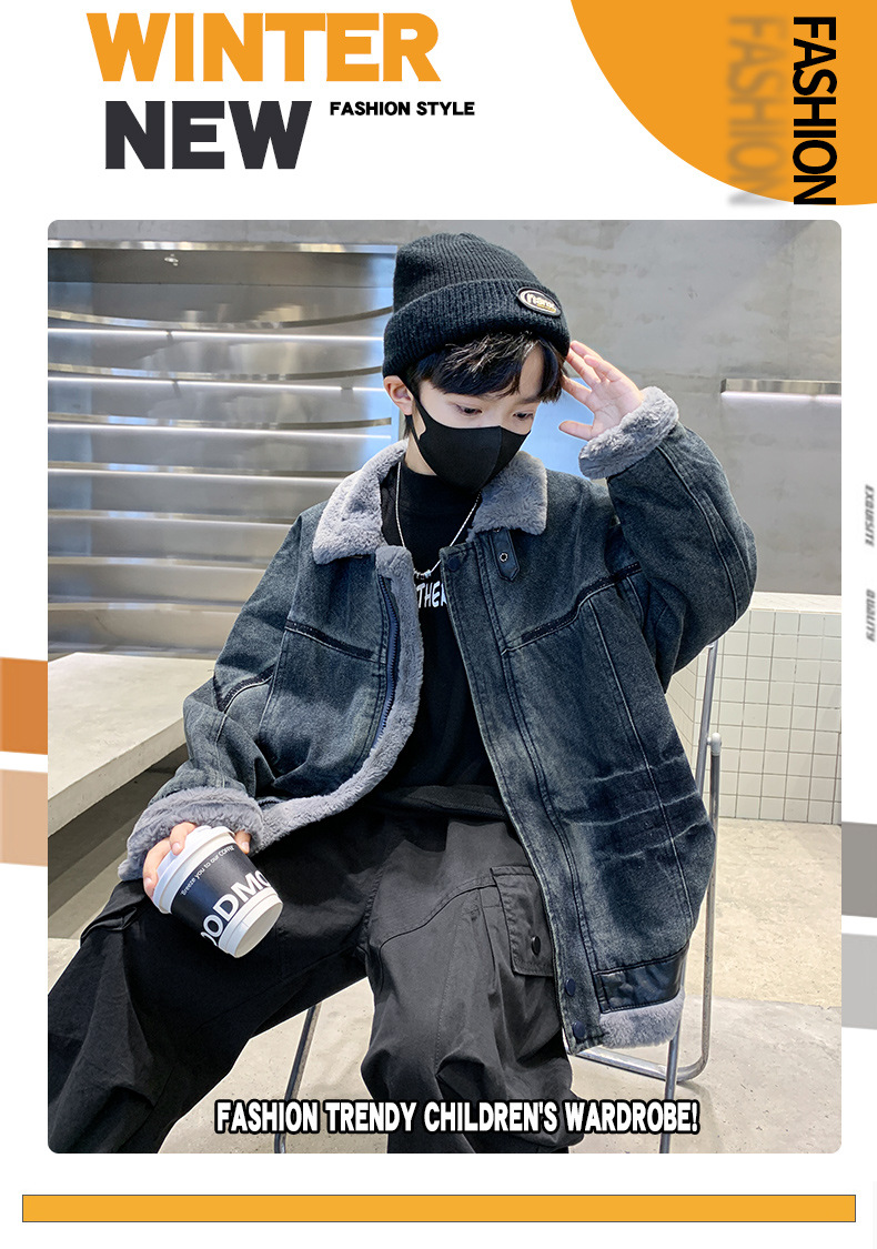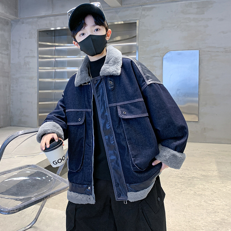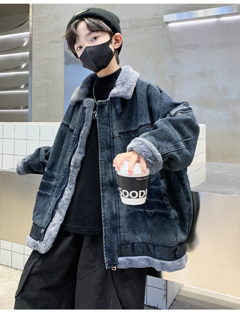 남아용 플리스 데님 재킷, 2025년 가을/겨울 신상, 아동용 겨울 보온, 면 안감, 두꺼운, 중대형 아동용 겨울스토어 가기