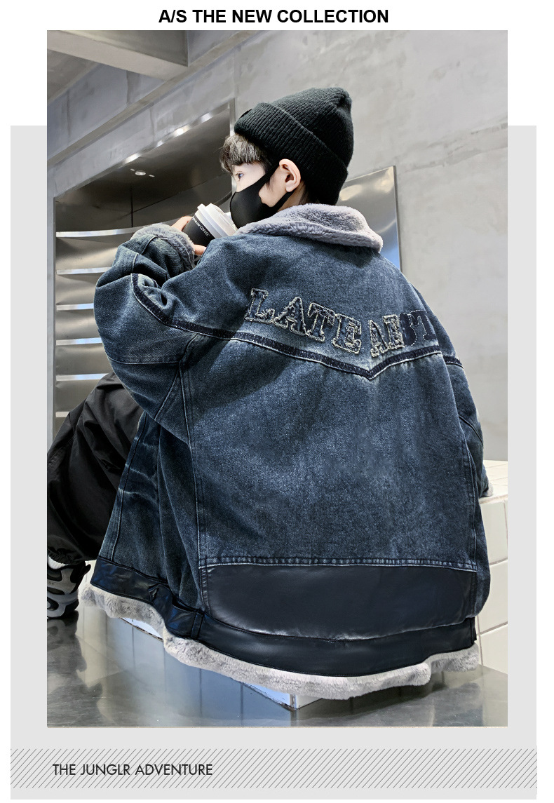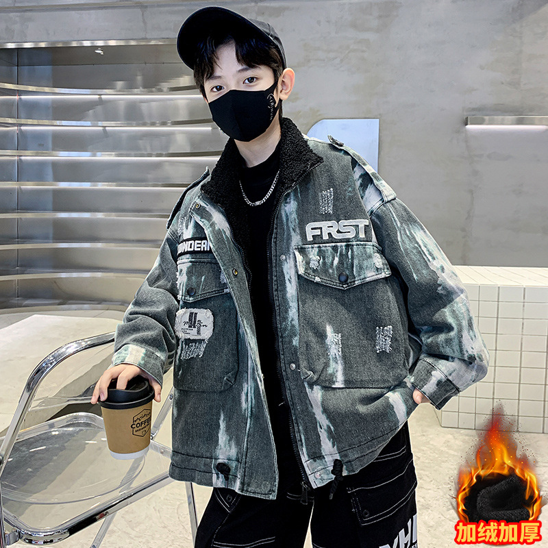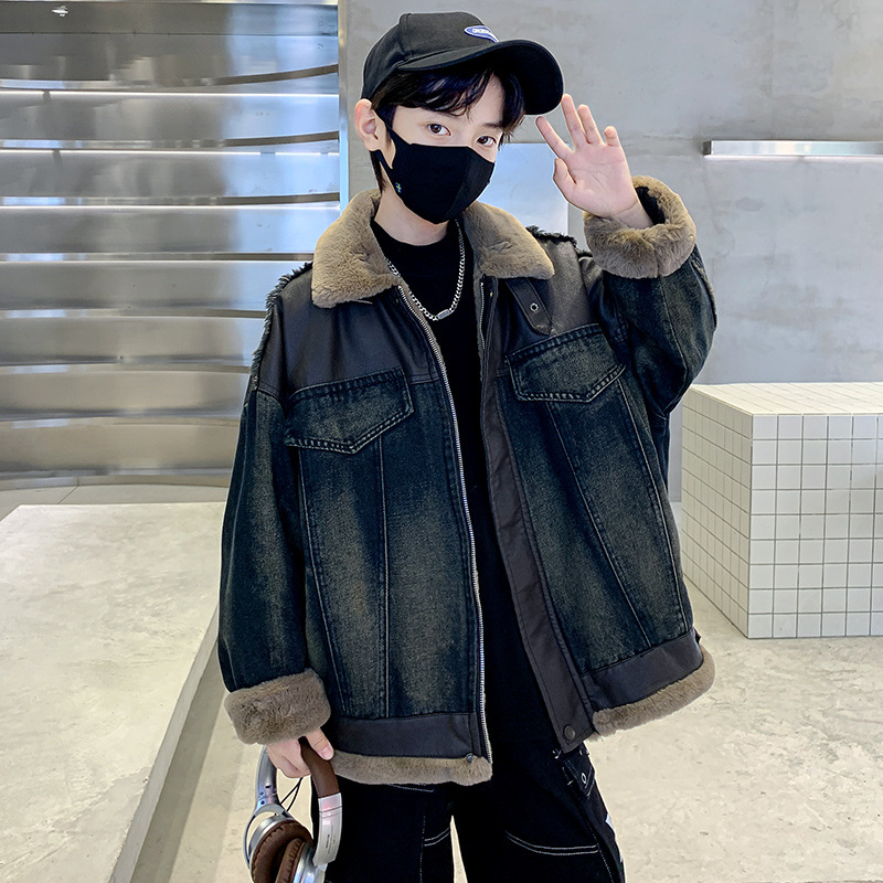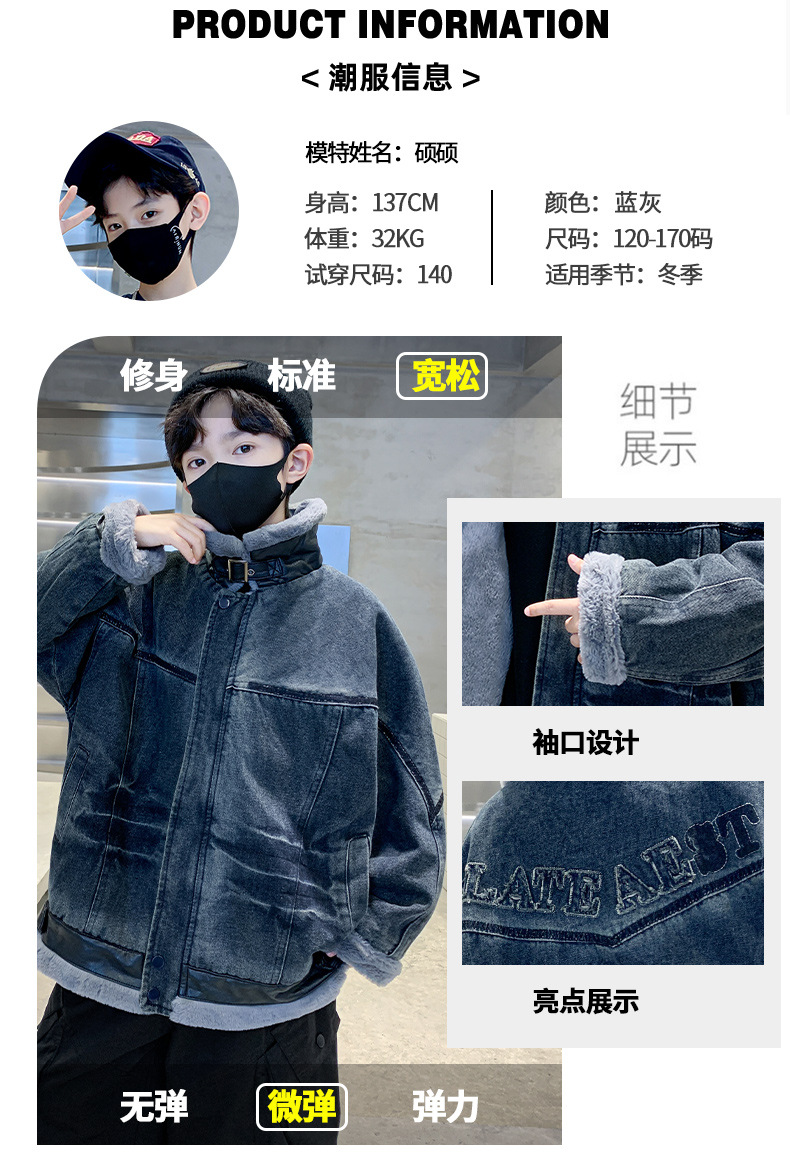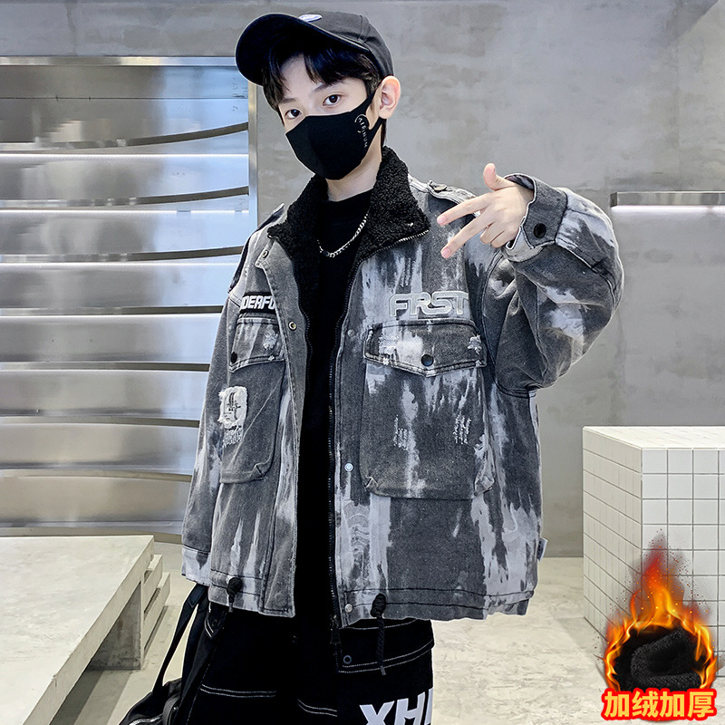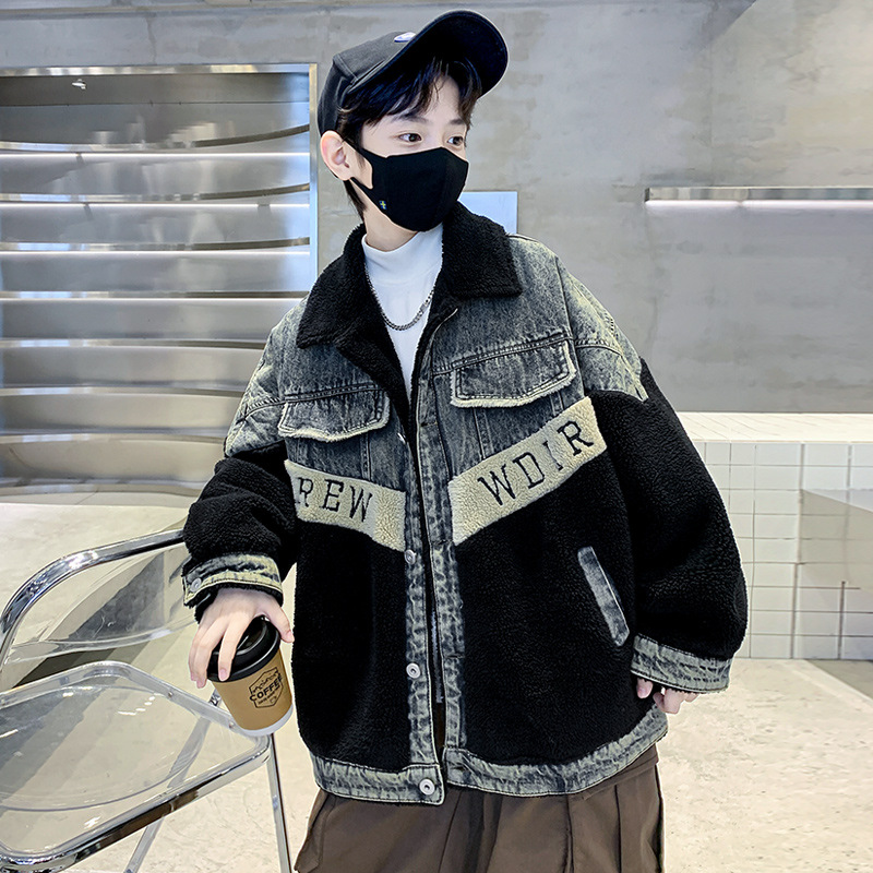 남아용 플리스 데님 재킷, 2025년 가을/겨울 신상, 아동용 겨울 보온, 면 안감, 두꺼운, 중대형 아동용 겨울스토어 가기