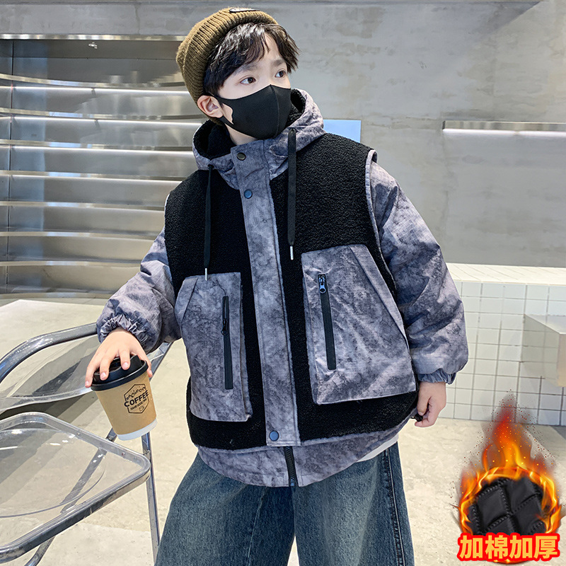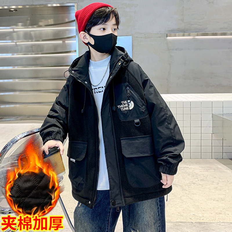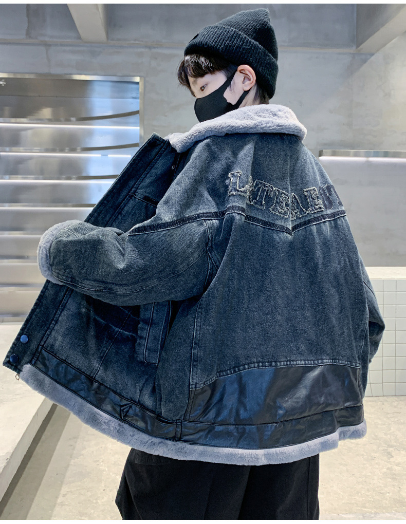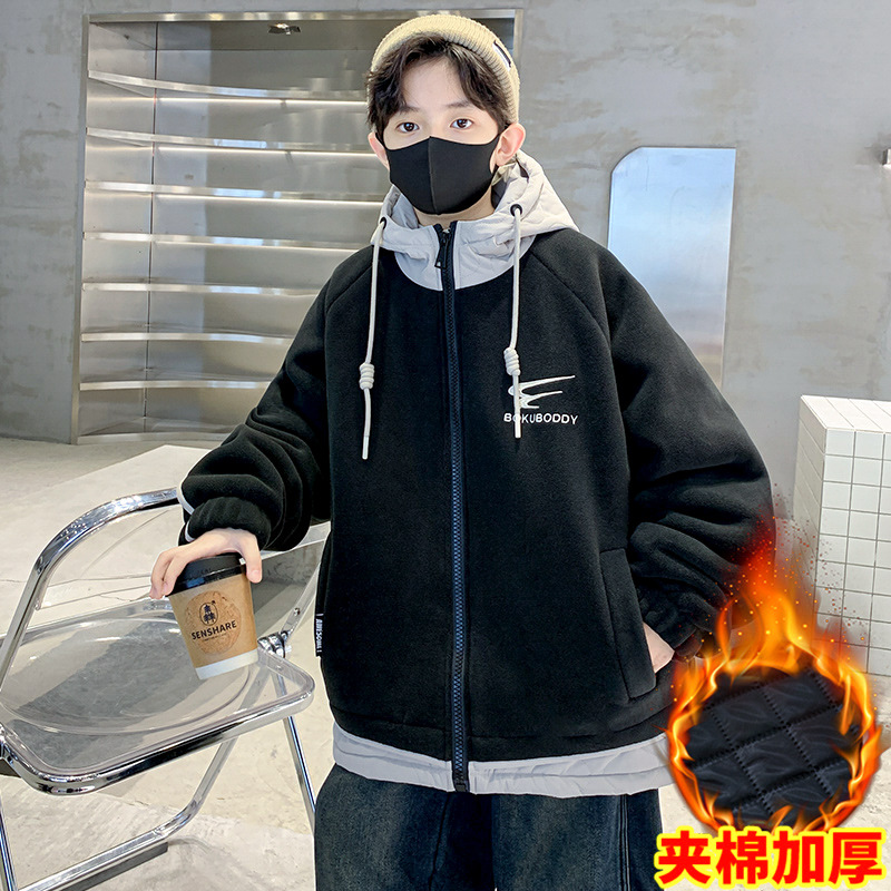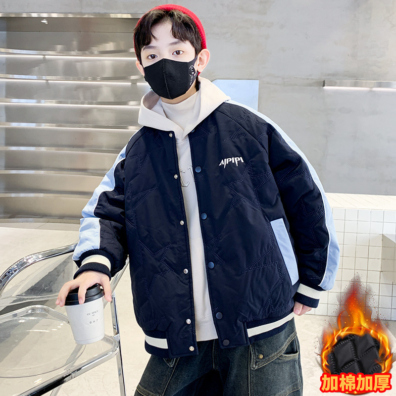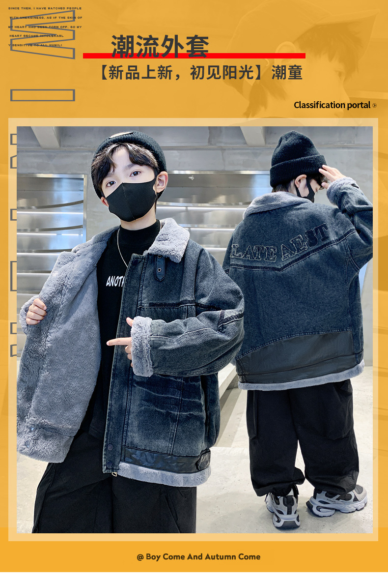 남아용 플리스 데님 재킷, 2025년 가을/겨울 신상, 아동용 겨울 보온, 면 안감, 두꺼운, 중대형 아동용 겨울스토어 가기