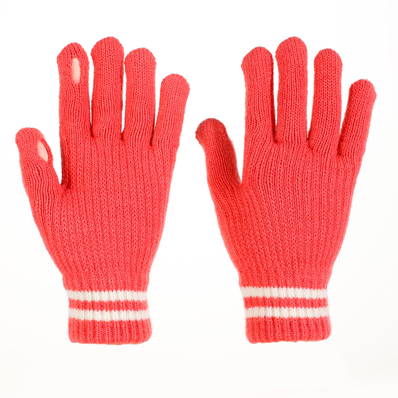 • 핑크 노출된 두 손가락 줄무늬 장갑