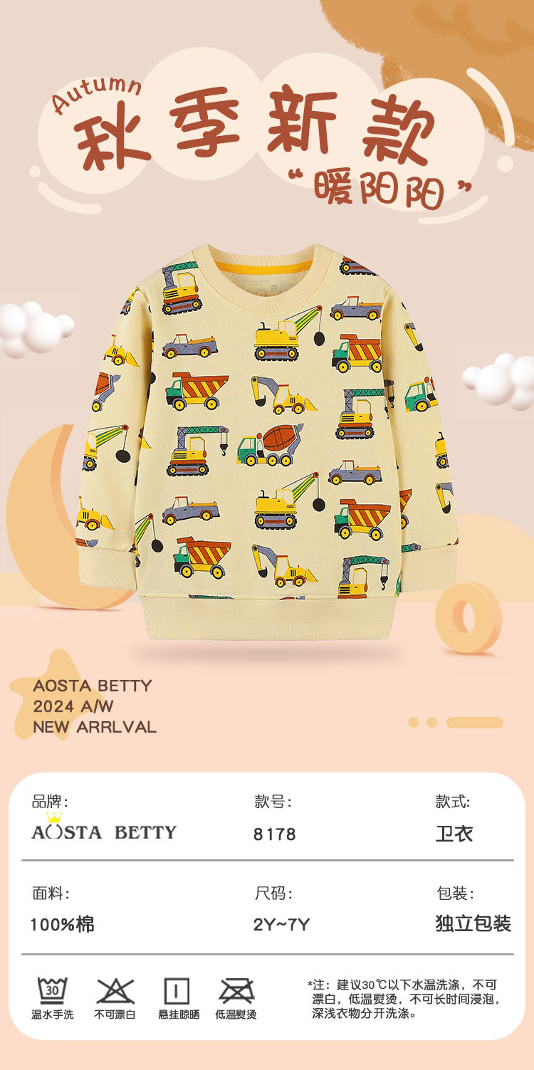 가을 유럽과 미국 스타일의 새로운 어린이 스웨터 어린이 만화 패턴 둥근 목 풀오버 아기 긴 소매 탑
