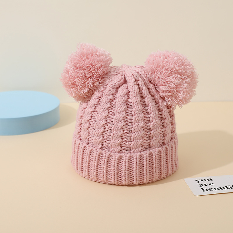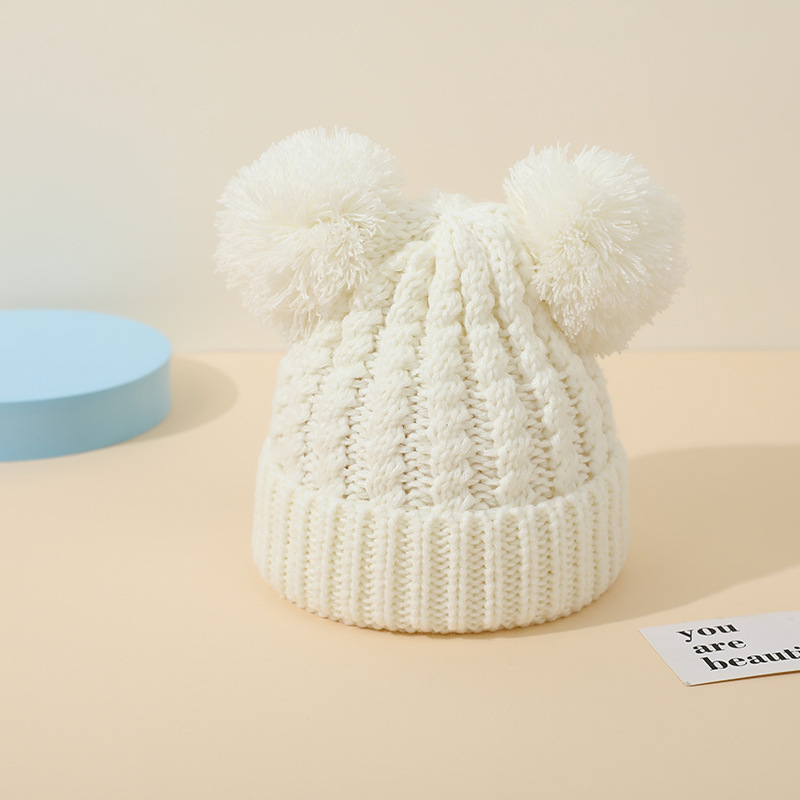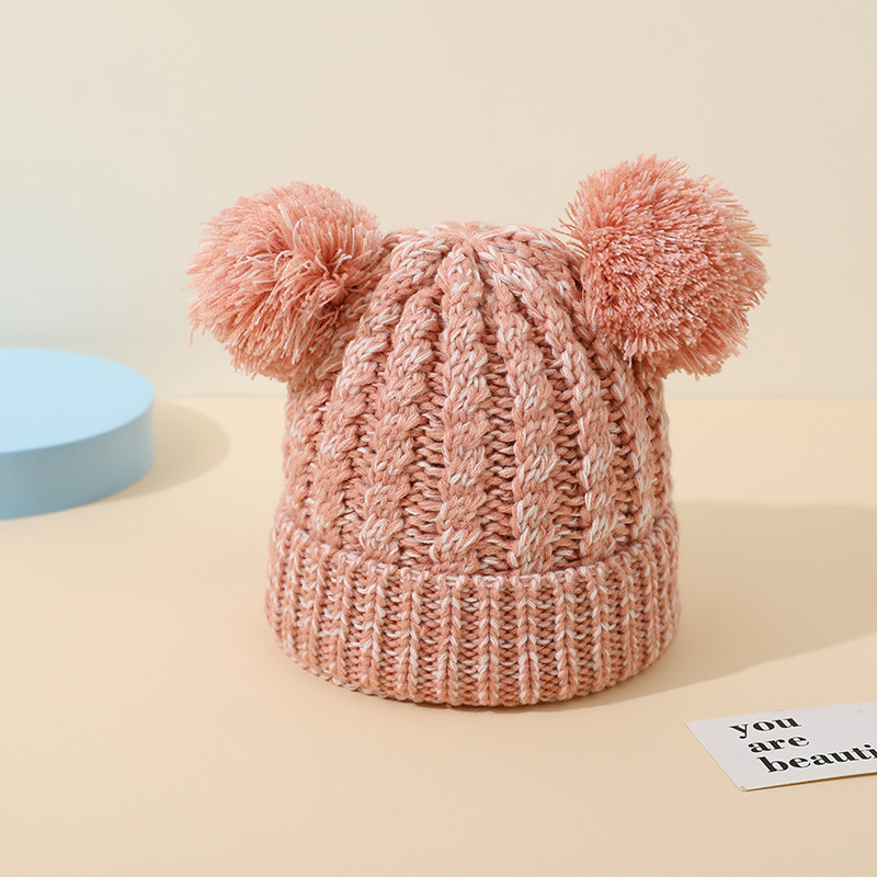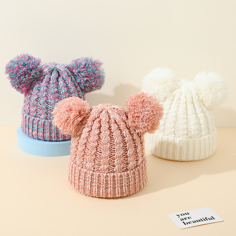 크로스 보더 아마존 겨울 모자 아기 니트 모자 크로스 보더 울 모자 어린이 더블 헤어 볼 2 색 울 모자 귀 보호스토어 가기