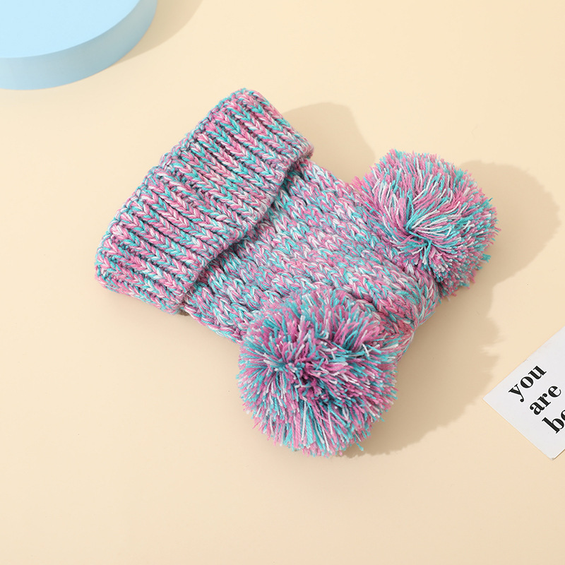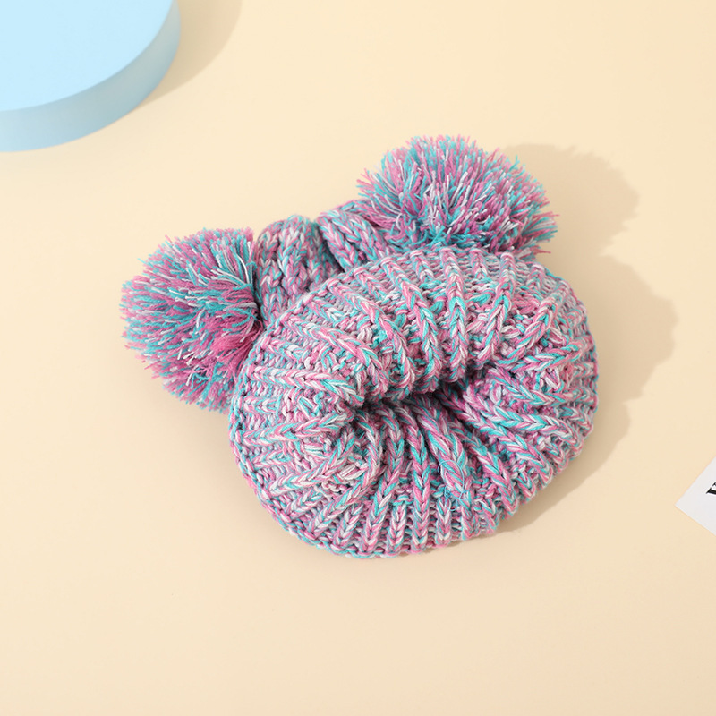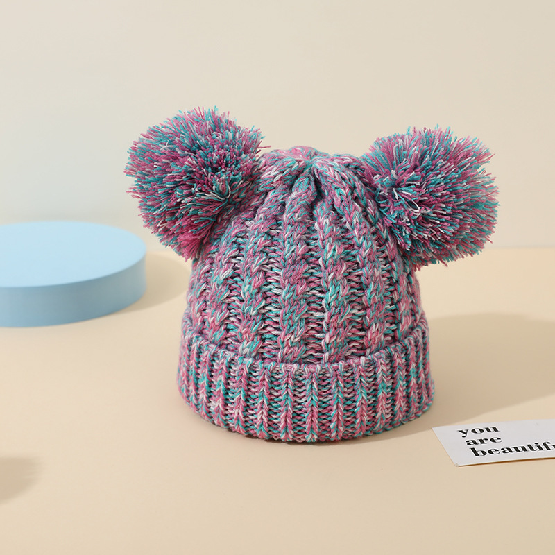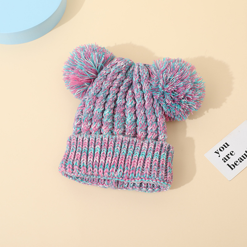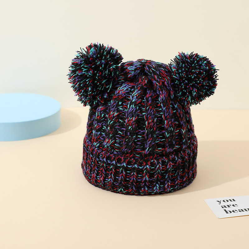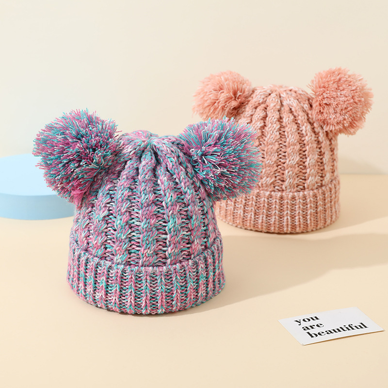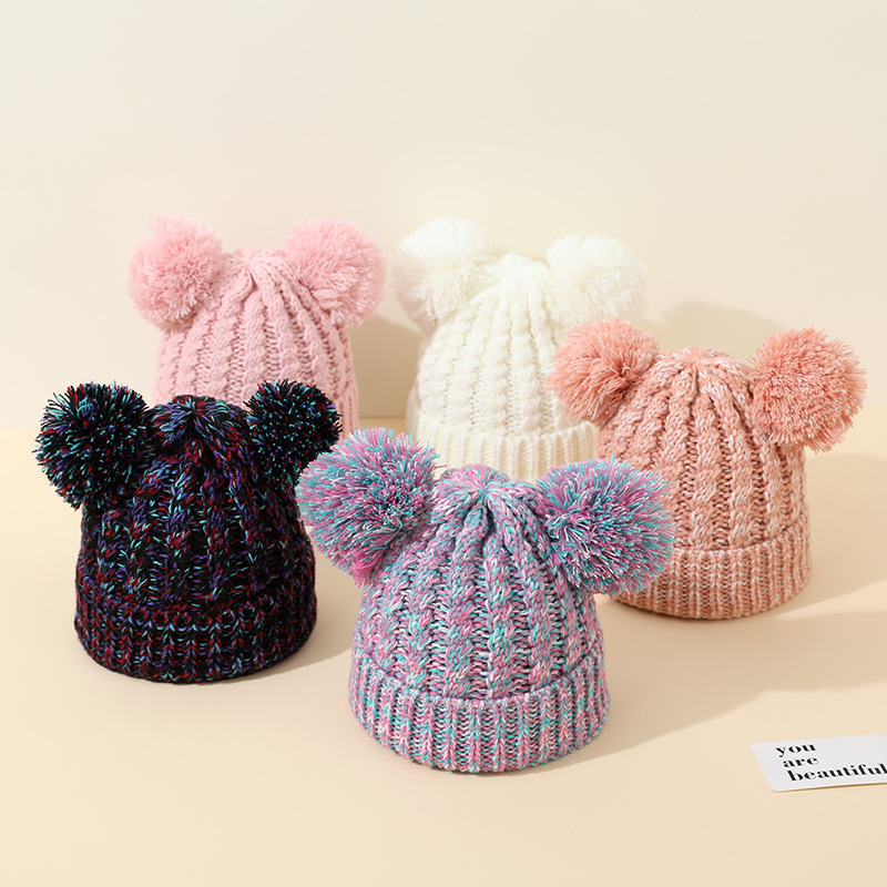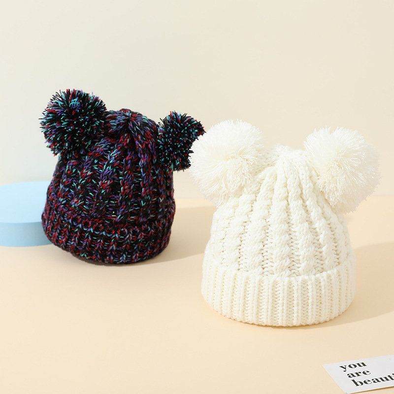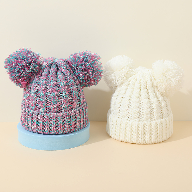 크로스 보더 아마존 겨울 모자 아기 니트 모자 크로스 보더 울 모자 어린이 더블 헤어 볼 2 색 울 모자 귀 보호