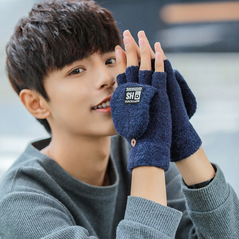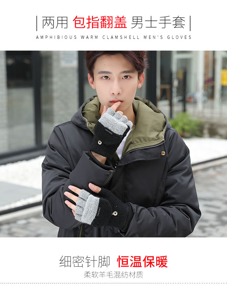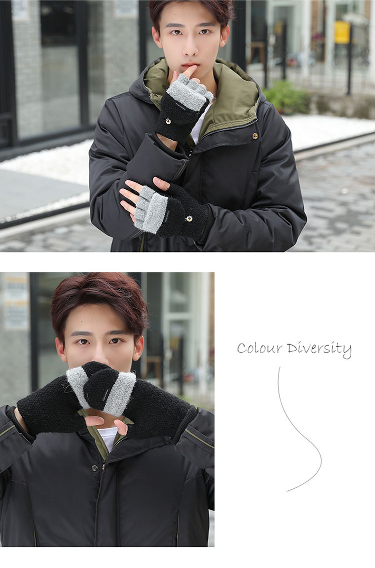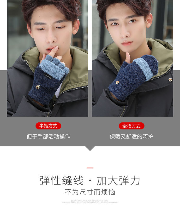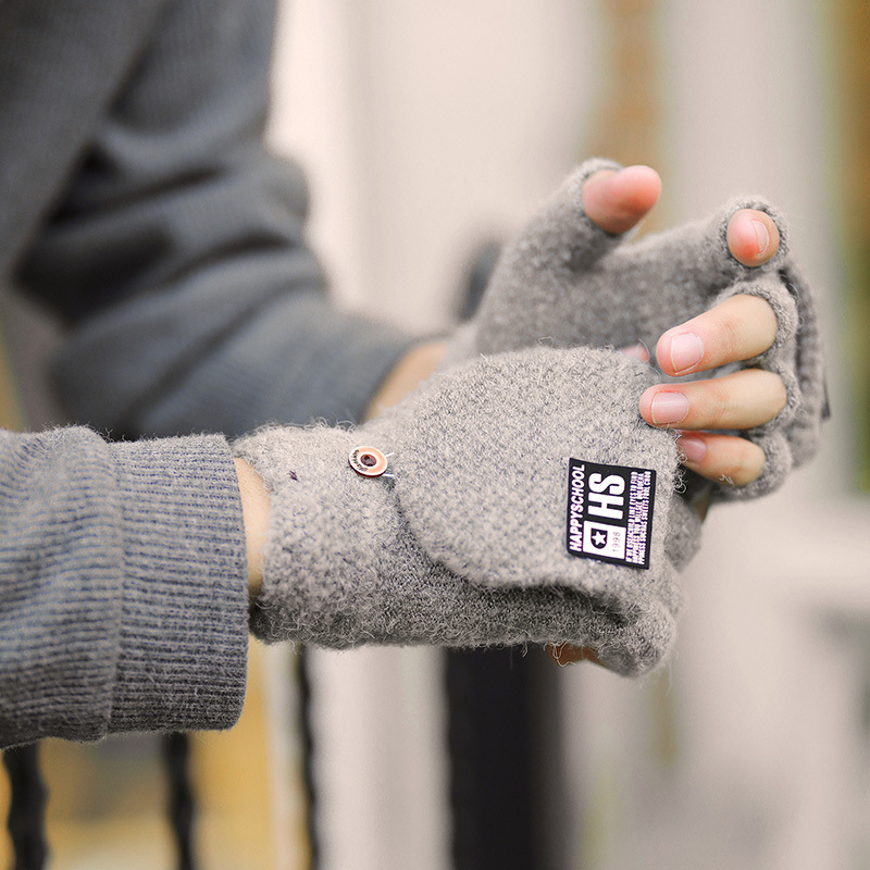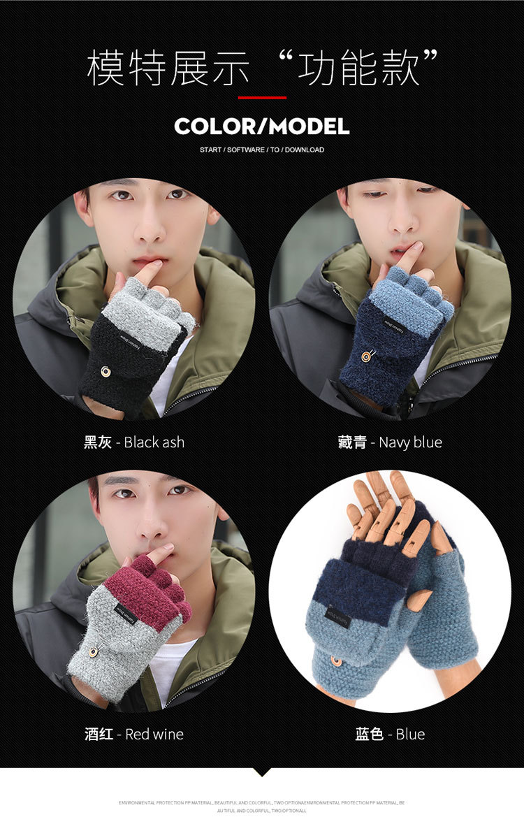 남성용 겨울 장갑, 보온성 강화, 두꺼운 벨벳 안감, 겨울용 모직, 가을 겨울 반손가락, 오픈형, 학생용, 자전거 타기용, 성인용스토어 가기