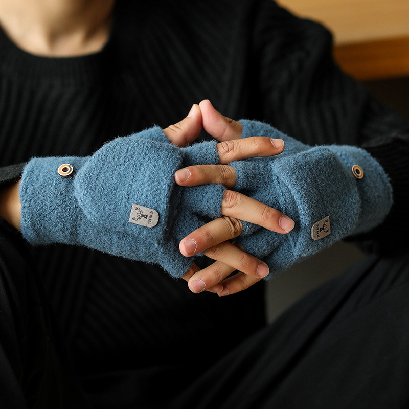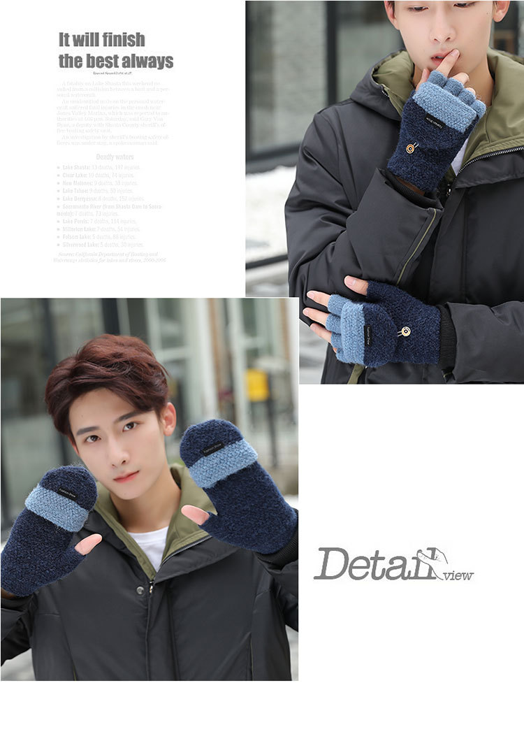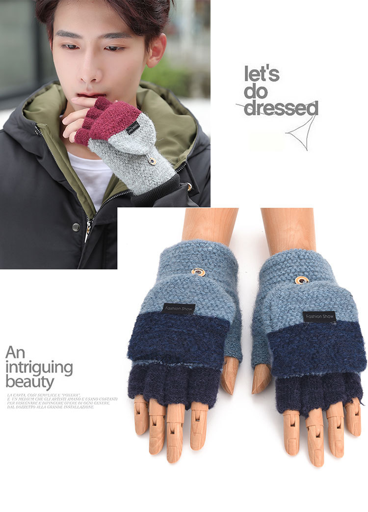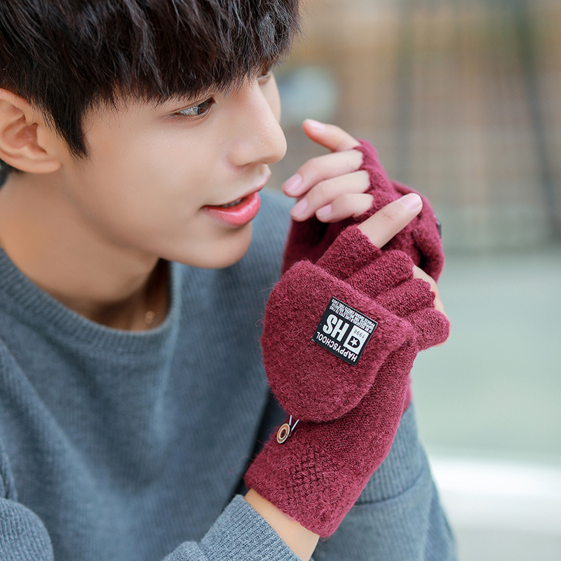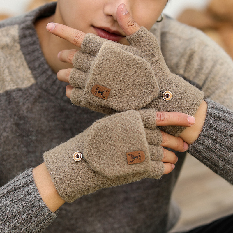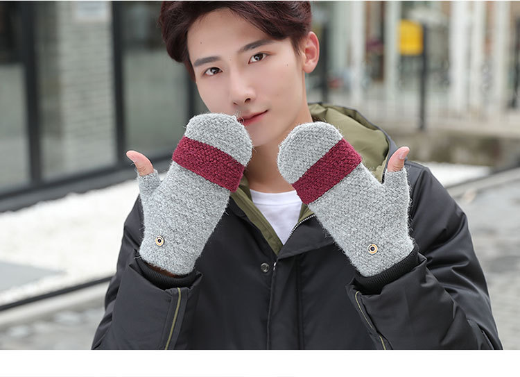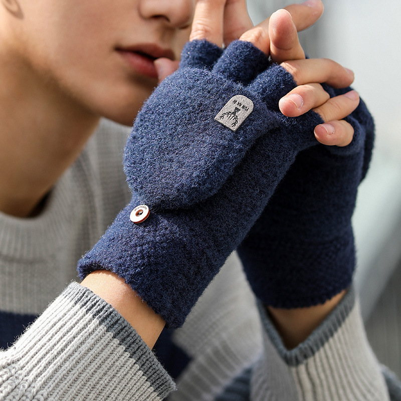 남성용 겨울 장갑, 보온성 강화, 두꺼운 벨벳 안감, 겨울용 모직, 가을 겨울 반손가락, 오픈형, 학생용, 자전거 타기용, 성인용스토어 가기