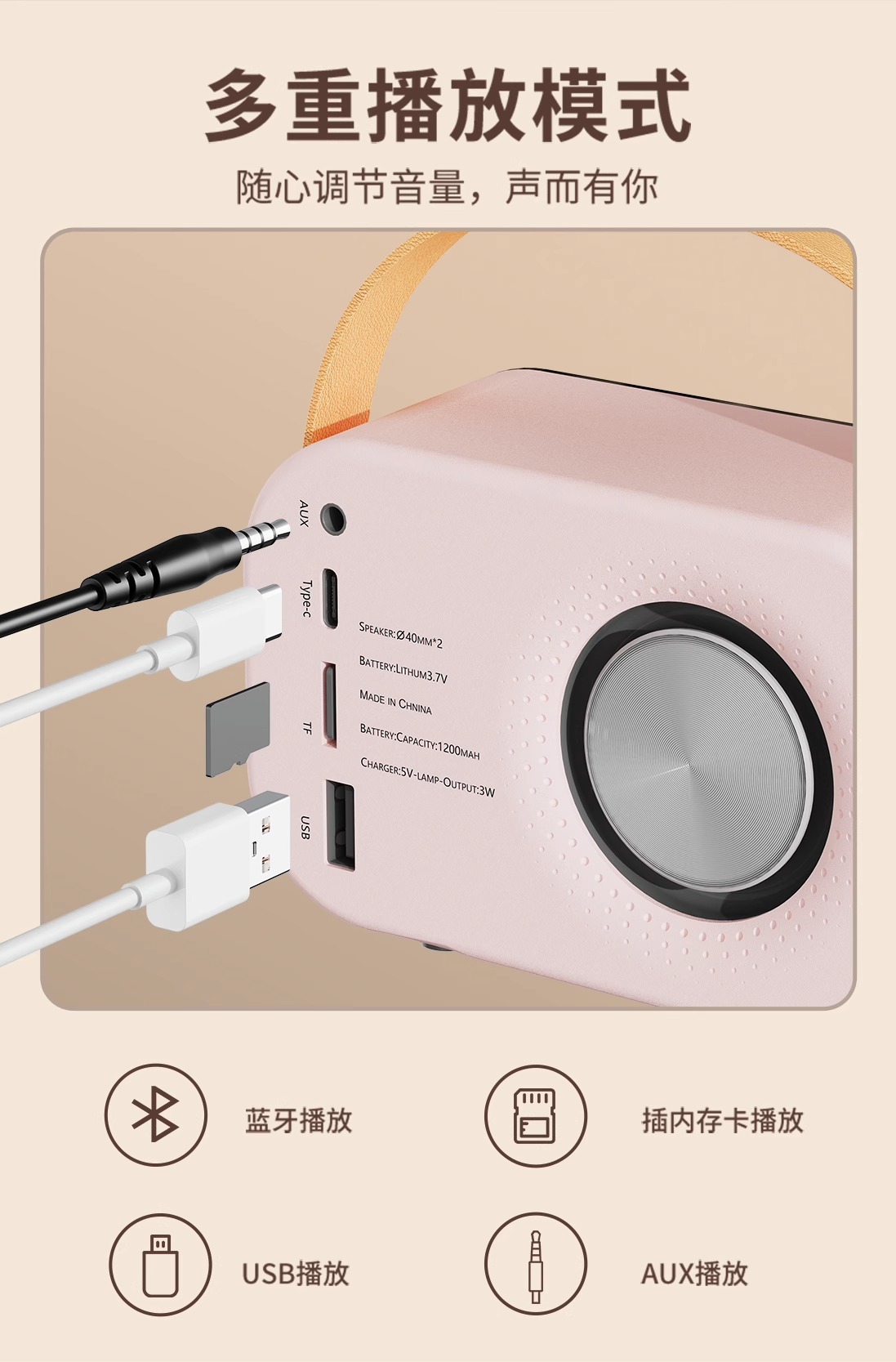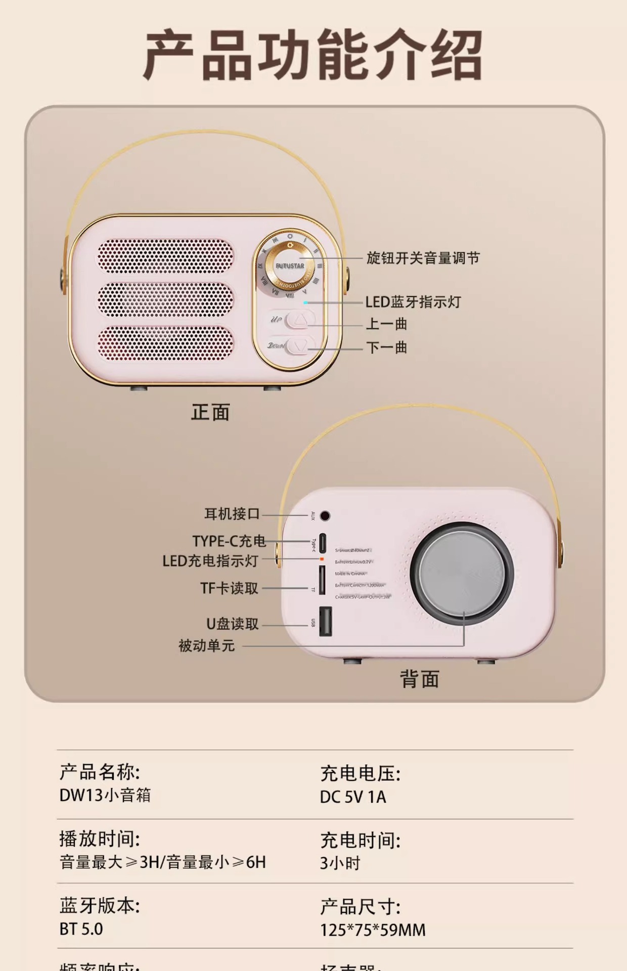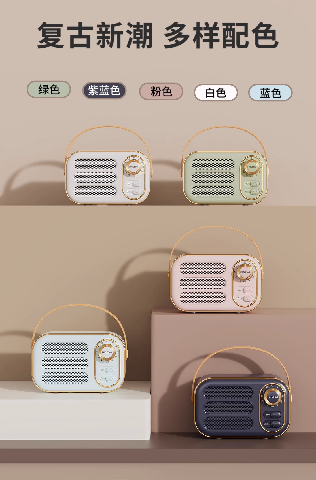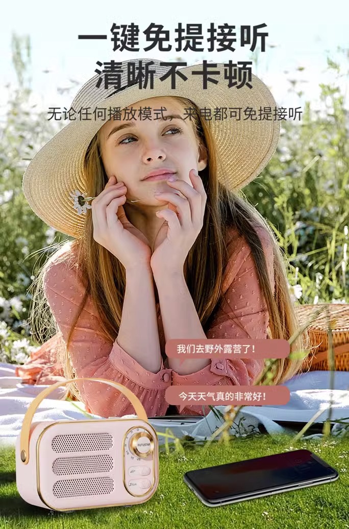 2023 새로운 레트로 블루투스 스피커 서브 우퍼 소형 스테레오 카드 U 디스크 고품질 귀여운 소녀 하트 휴대용스토어 가기