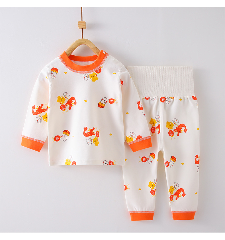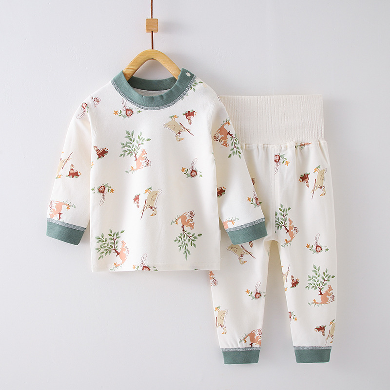 가을 겨울 아기 속옷 세트 순면 어린이 가을옷 가을바지 투피스 세트 하이웨이스트 배 보호 잠옷 보온 속옷