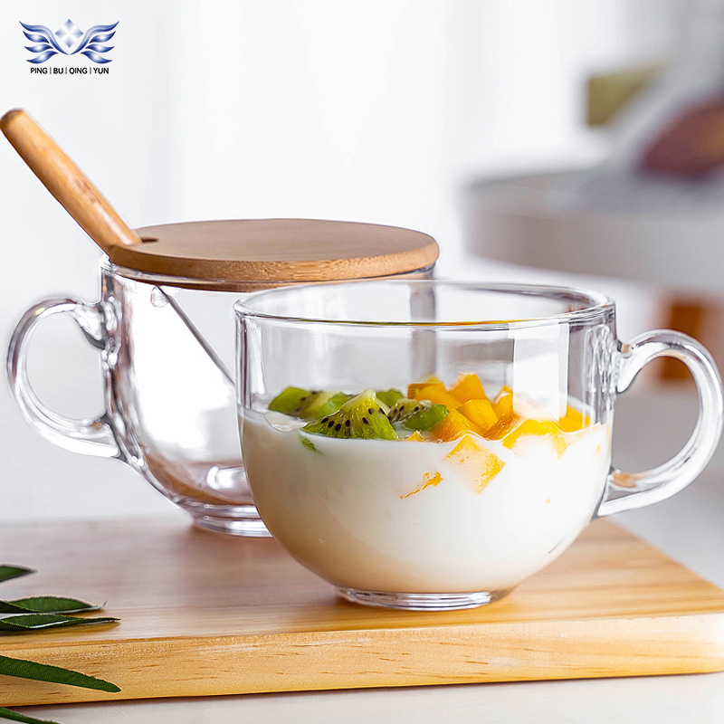 인터넷 유명인 대용량의 귀여운 가정 아침 식사 컵 손잡이 커피 우유 컵 작은 선물 유리 물 컵 도매