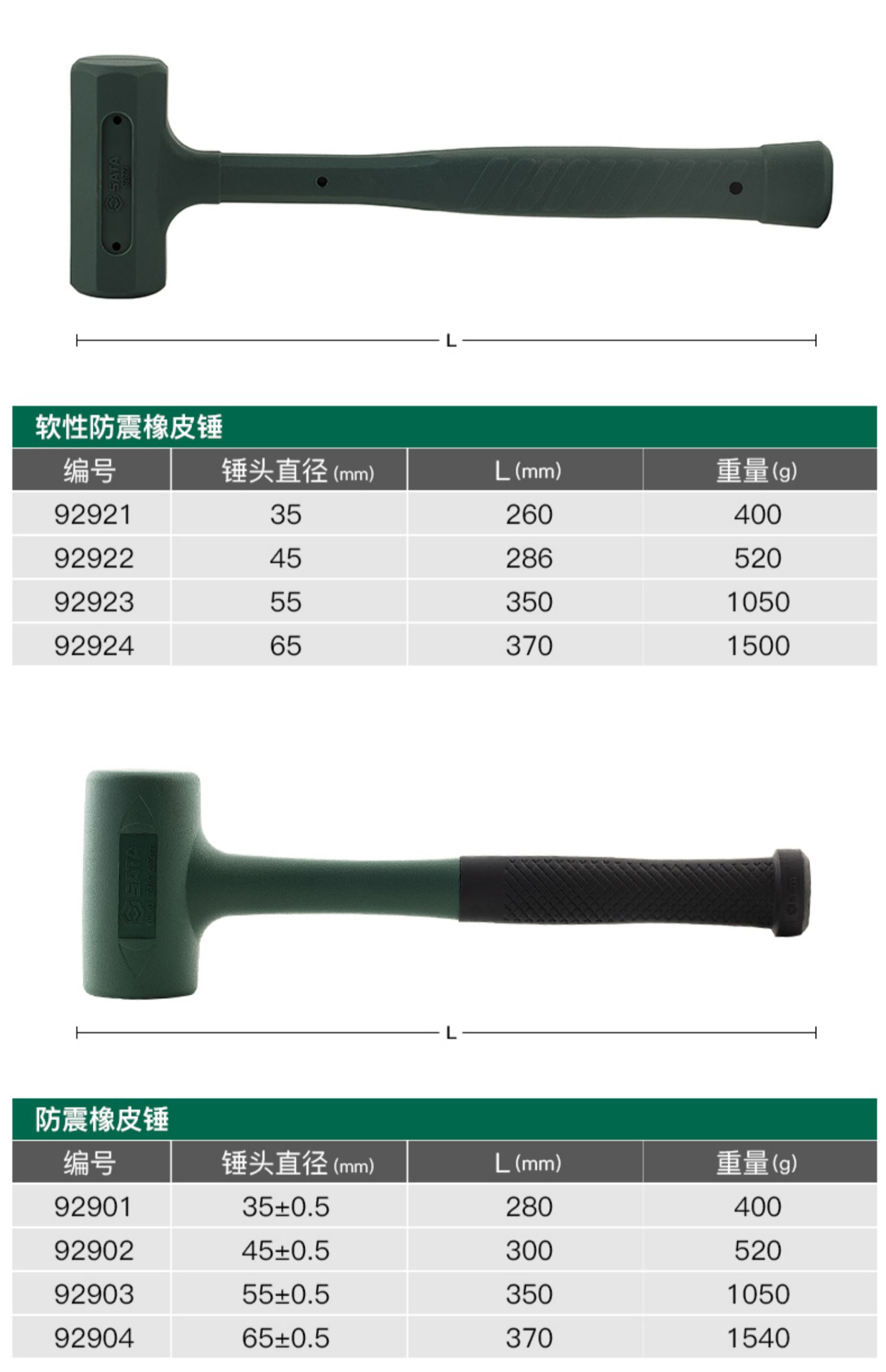• 92923 부드러운 충격 방지 고무 망치 55MM