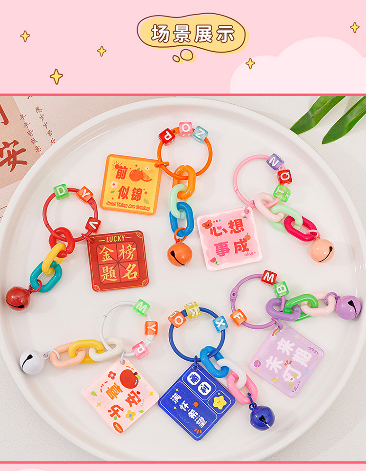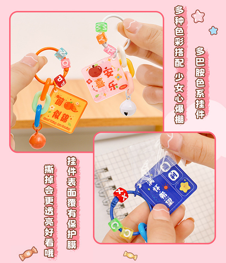 만화 영감을 주는 문구 키체인 학생용 귀여운 가방 장식 어린이 DIY 키링 작은 선물