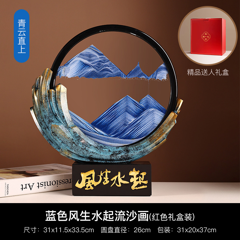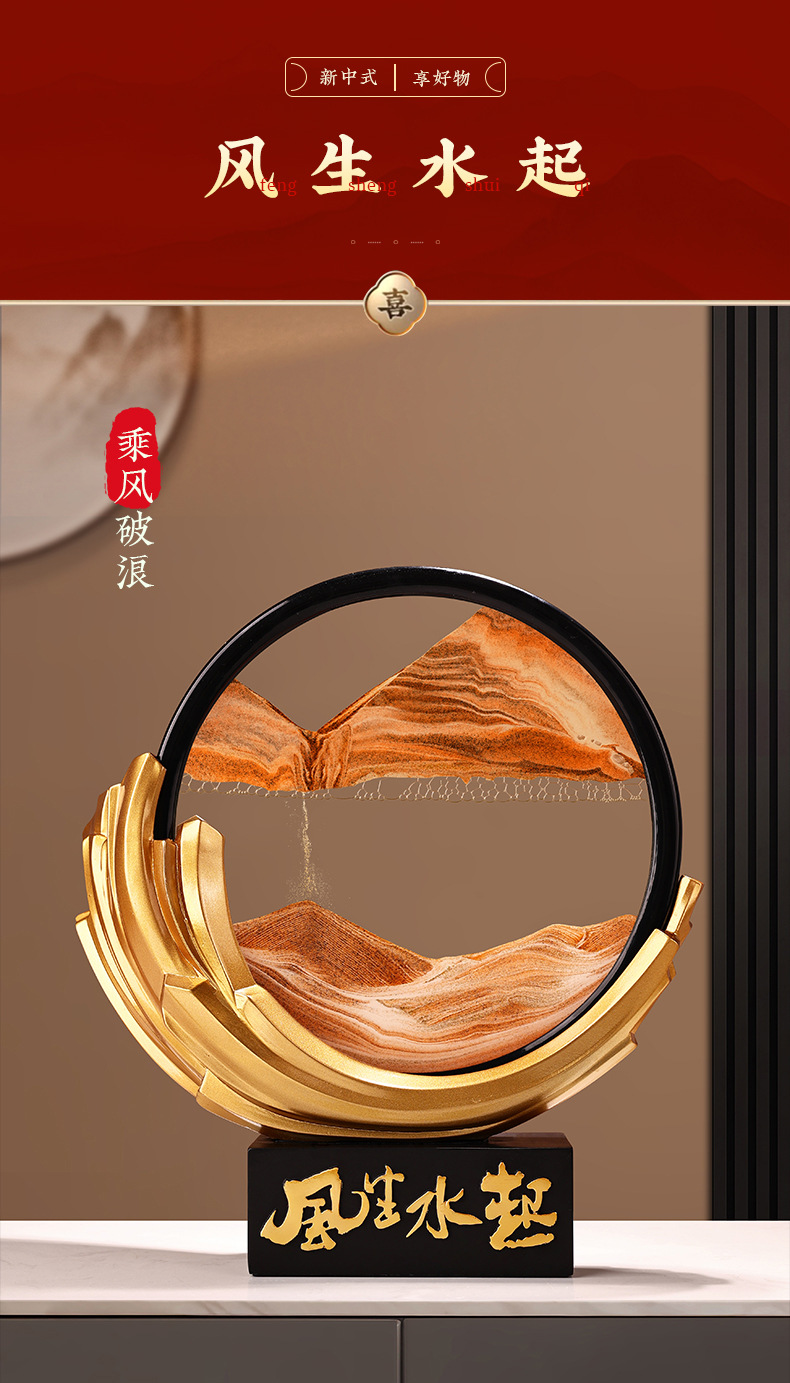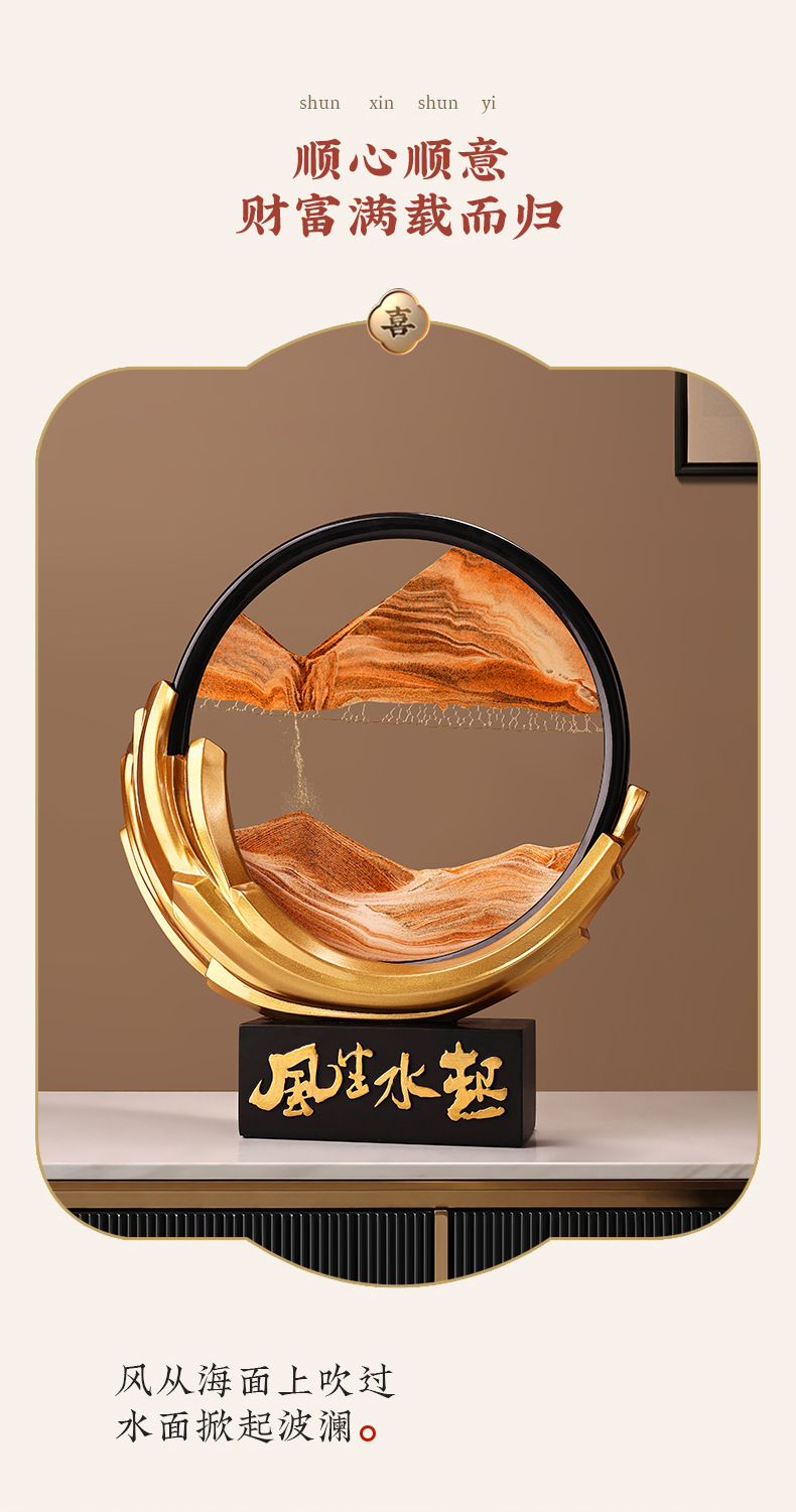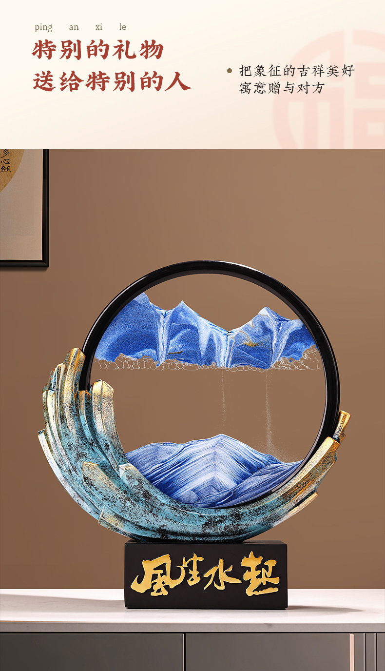 Behanmei 중국 스타일의 바람과 물 퀵 샌드 페인팅 장식품 거실 문화 및 창조적 인 선물 기념품 연례 선물 기부