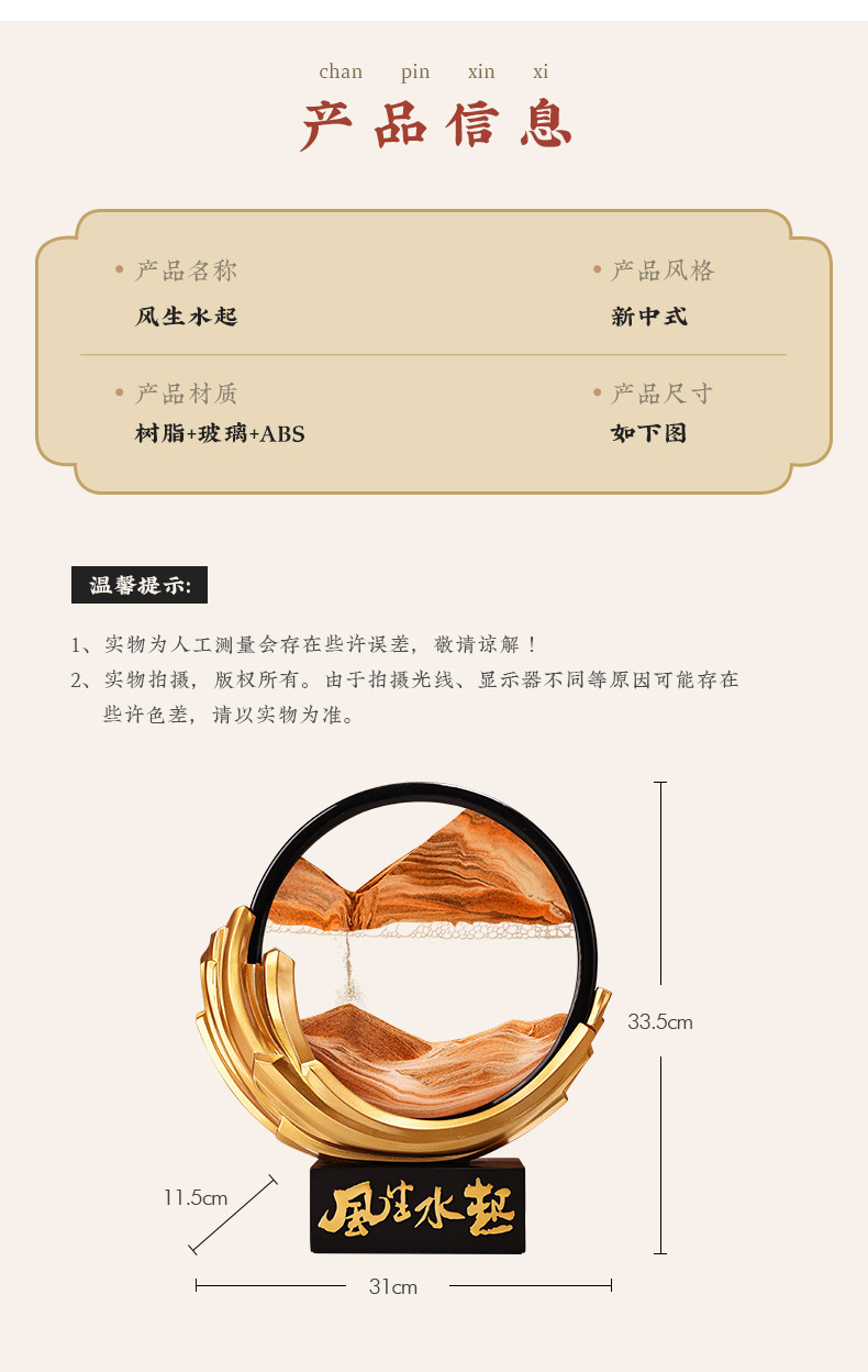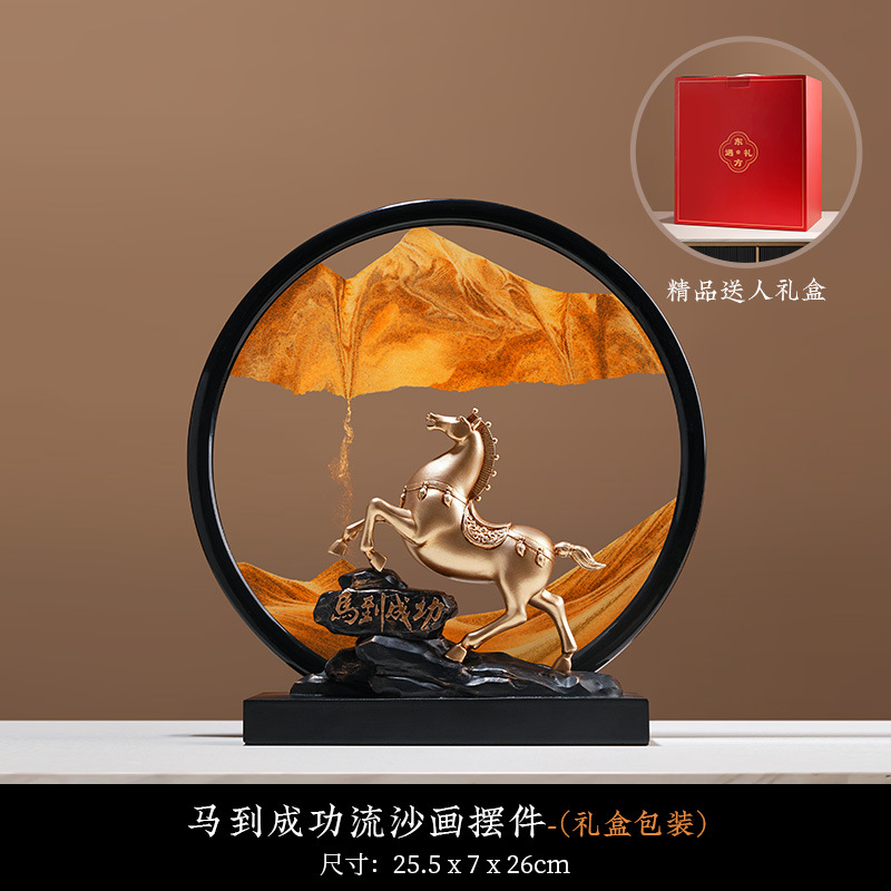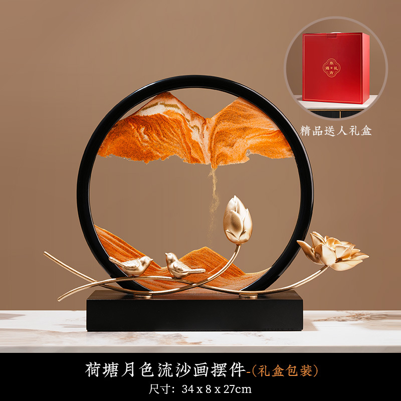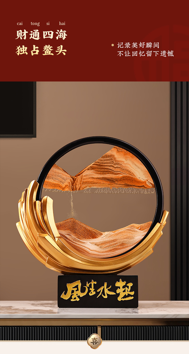 Behanmei 중국 스타일의 바람과 물 퀵 샌드 페인팅 장식품 거실 문화 및 창조적 인 선물 기념품 연례 선물 기부