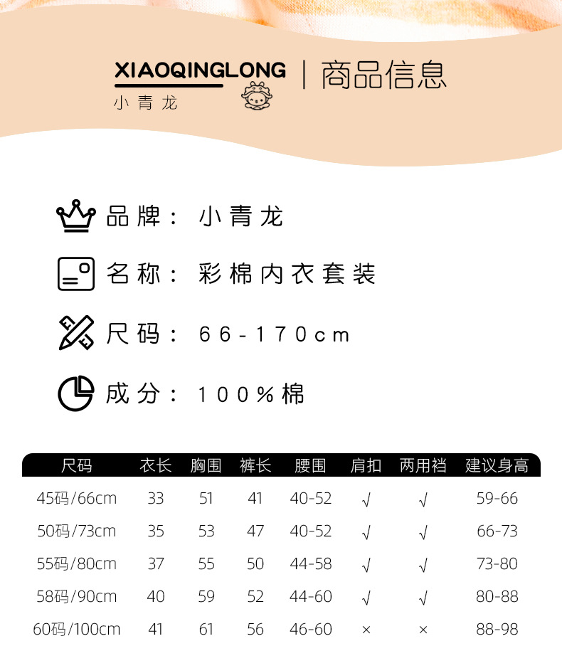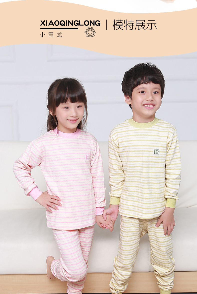 리틀 Qinglong 어린이 속옷 순면 가을 옷과 소년 소녀 용 바지 세트 색상 코튼 봄과 가을 아기를위한 얇은 열 속옷