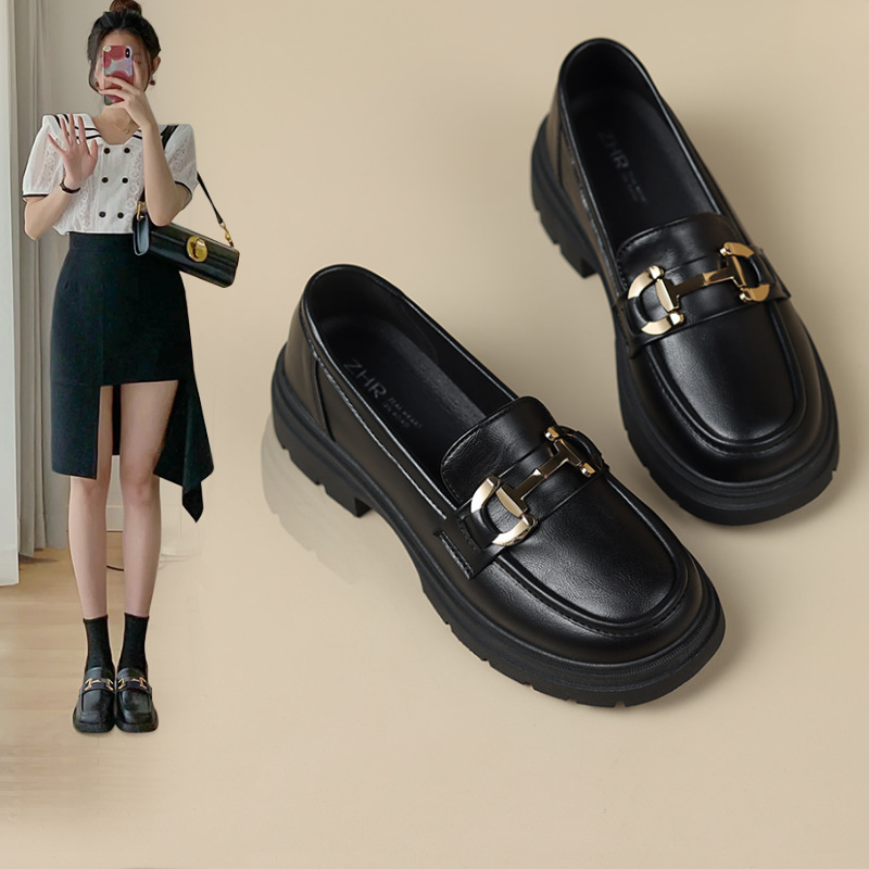 ZHR 영국 스타일 작은 가죽 신발 여성 봄과 가을 올 매치 두꺼운 바닥 로퍼 2024 새로운 검은 여성 스커트 신발스토어 가기