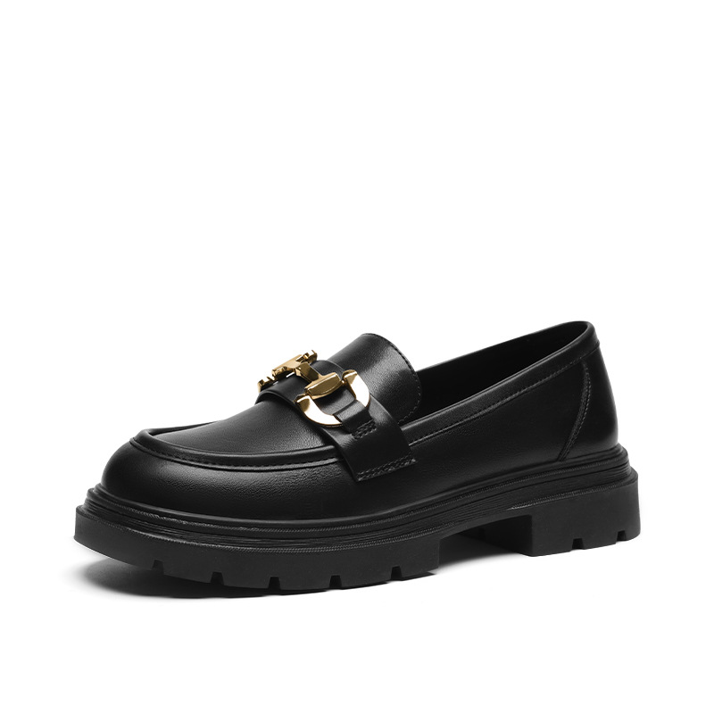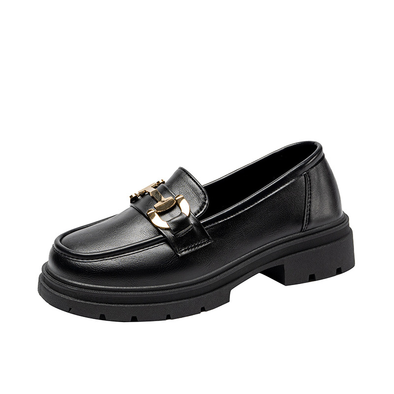ZHR 영국 스타일 작은 가죽 신발 여성 봄과 가을 올 매치 두꺼운 바닥 로퍼 2024 새로운 검은 여성 스커트 신발