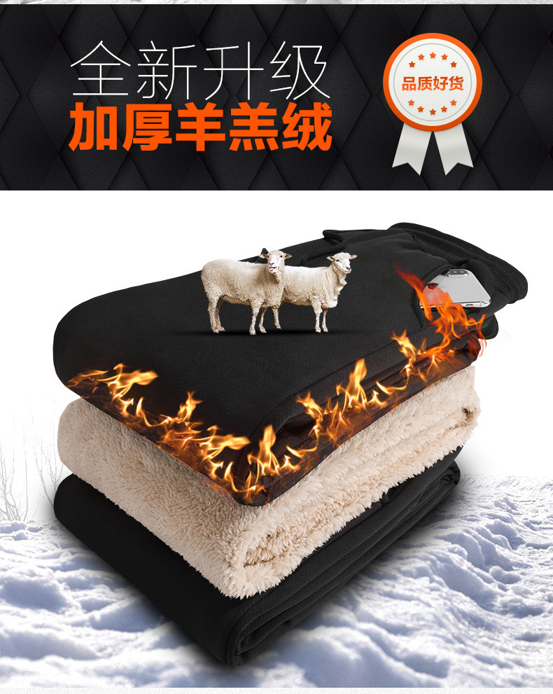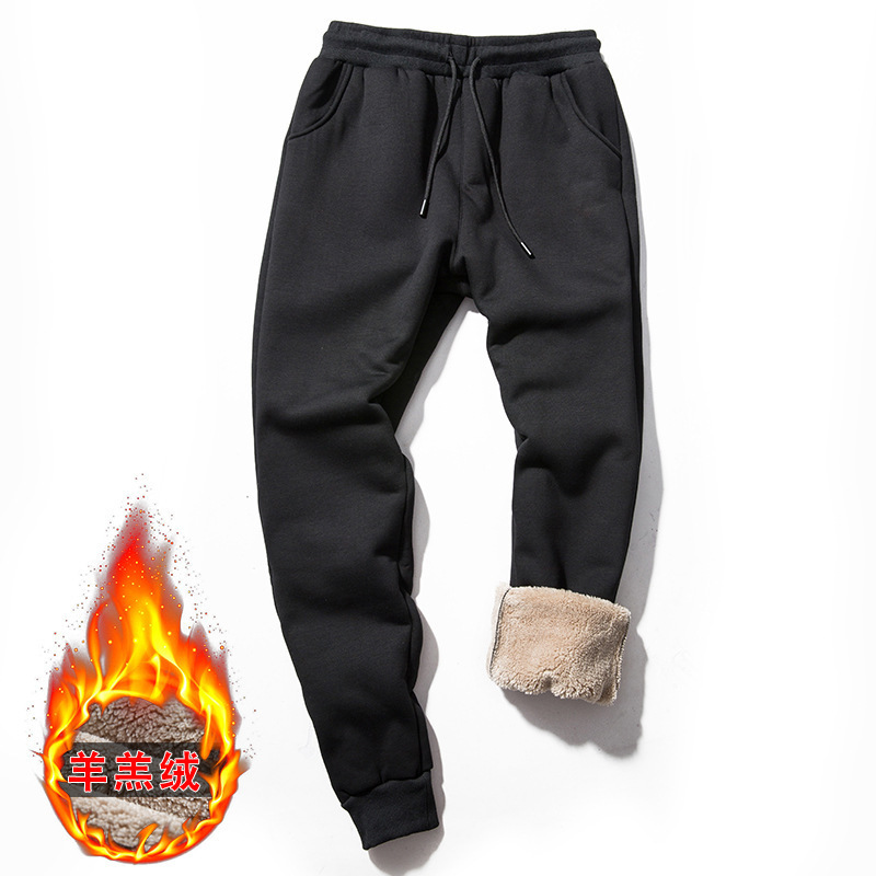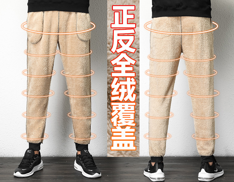 冬季羊羔绒裤子男士青少年运动裤卫裤束脚潮流宽松加绒加厚休闲裤