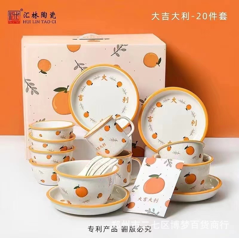 행운의 20 조각 세라믹 식기 세트 가정용 20 조각 식기 세트 오프닝 이벤트 선물 도매