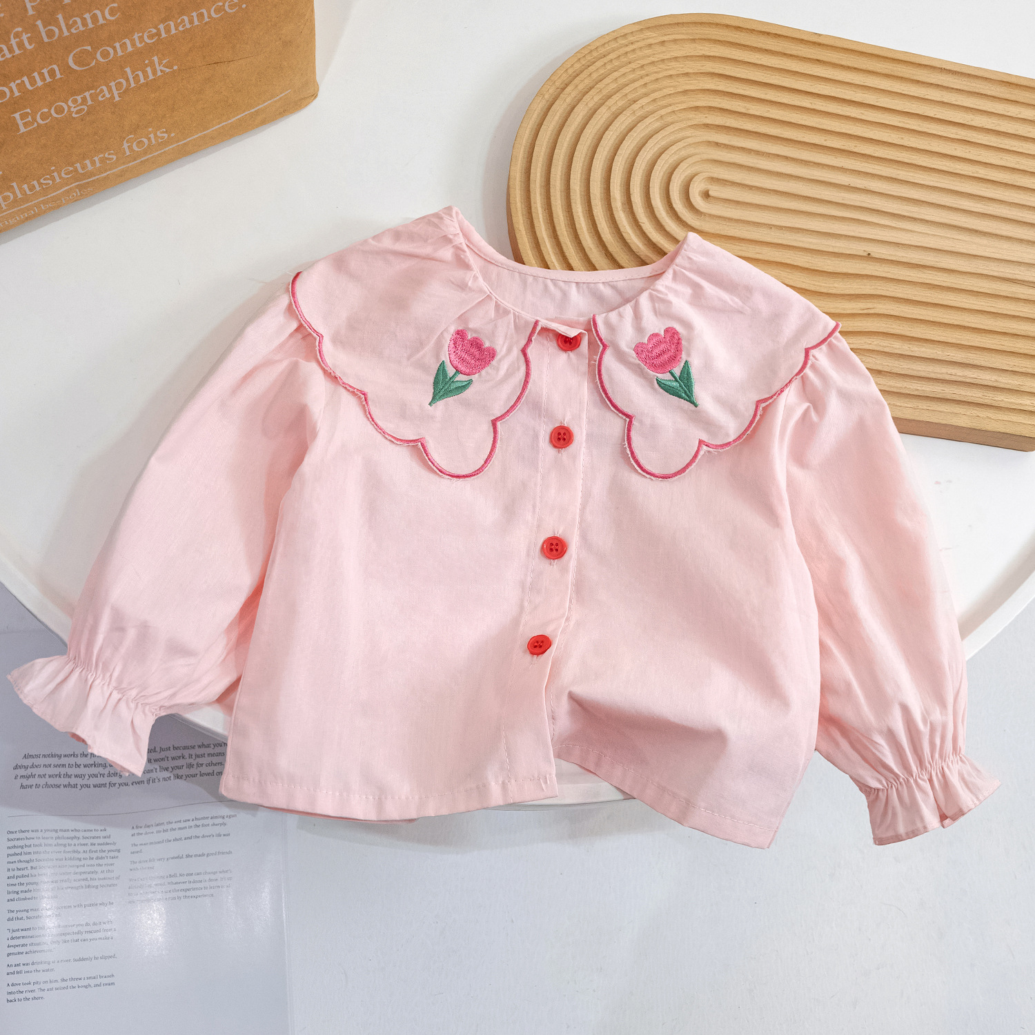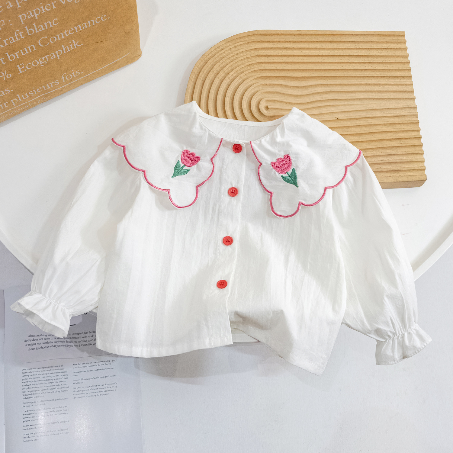 여자 셔츠 서양식 2025 새로운 가을 베이비 셔츠 봄, 가을 여성 순수 코튼 달콤한 한국 봄, 가을 탑스토어 가기