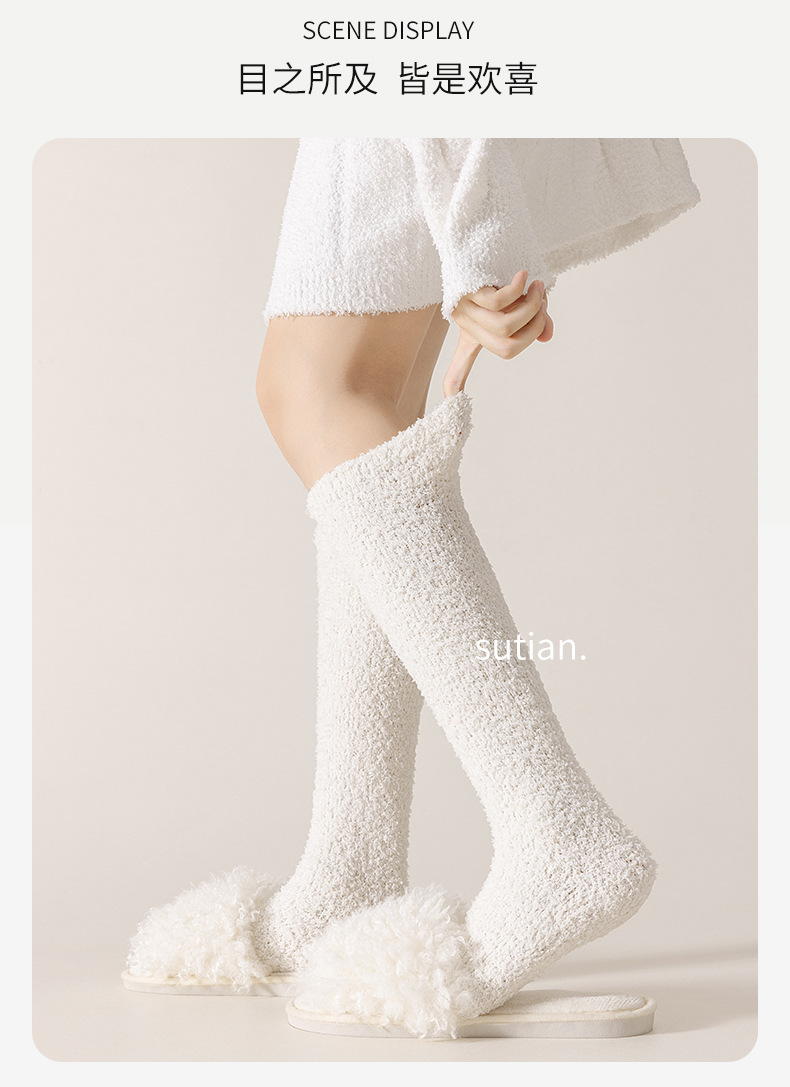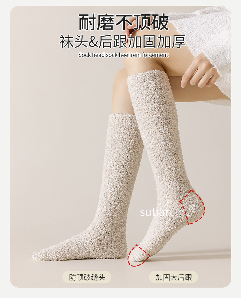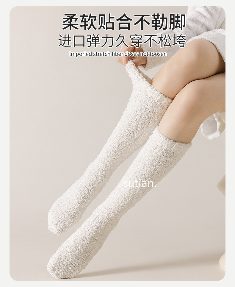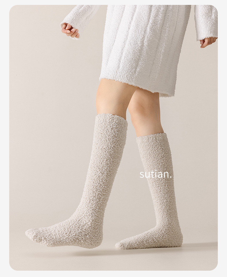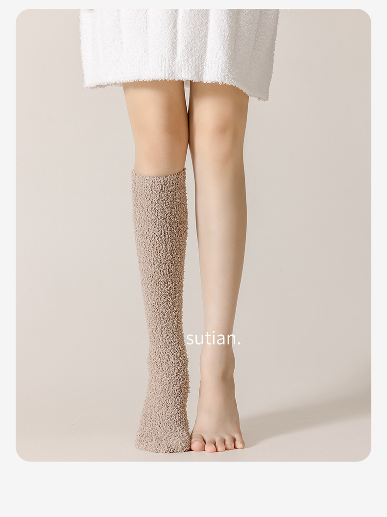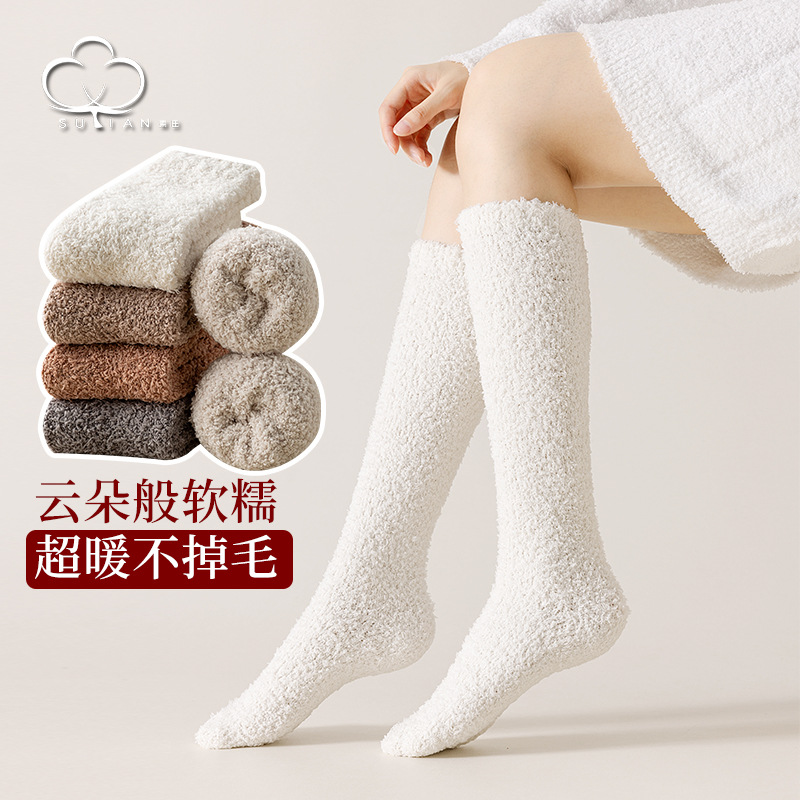 송아지 양말 여성 스타킹 가을과 겨울 기모 두꺼운 산호 양털 따뜻한 무릎 양말 통기성 땀 흡수 숙녀 봉제 양말스토어 가기