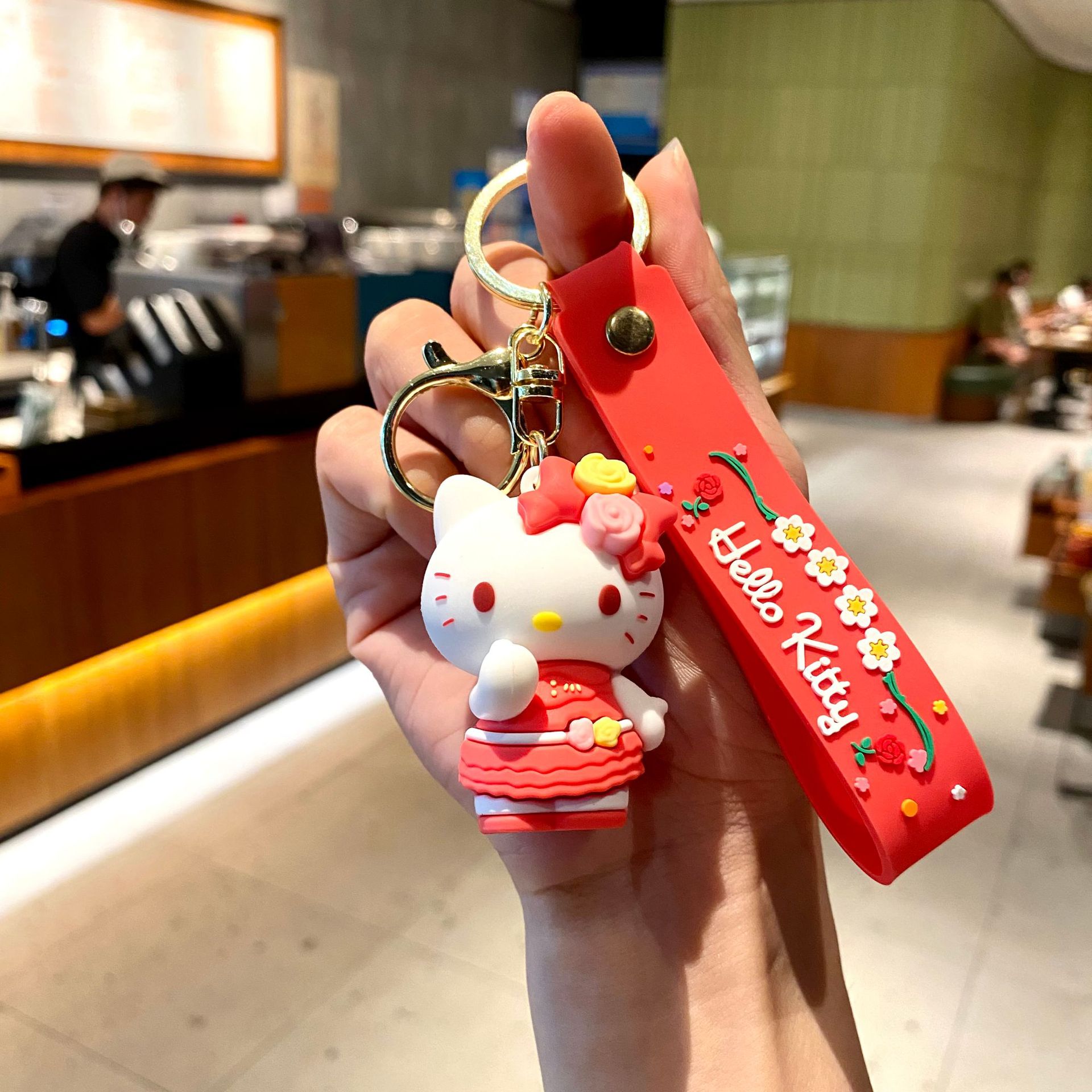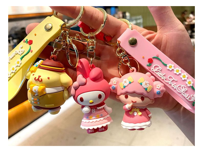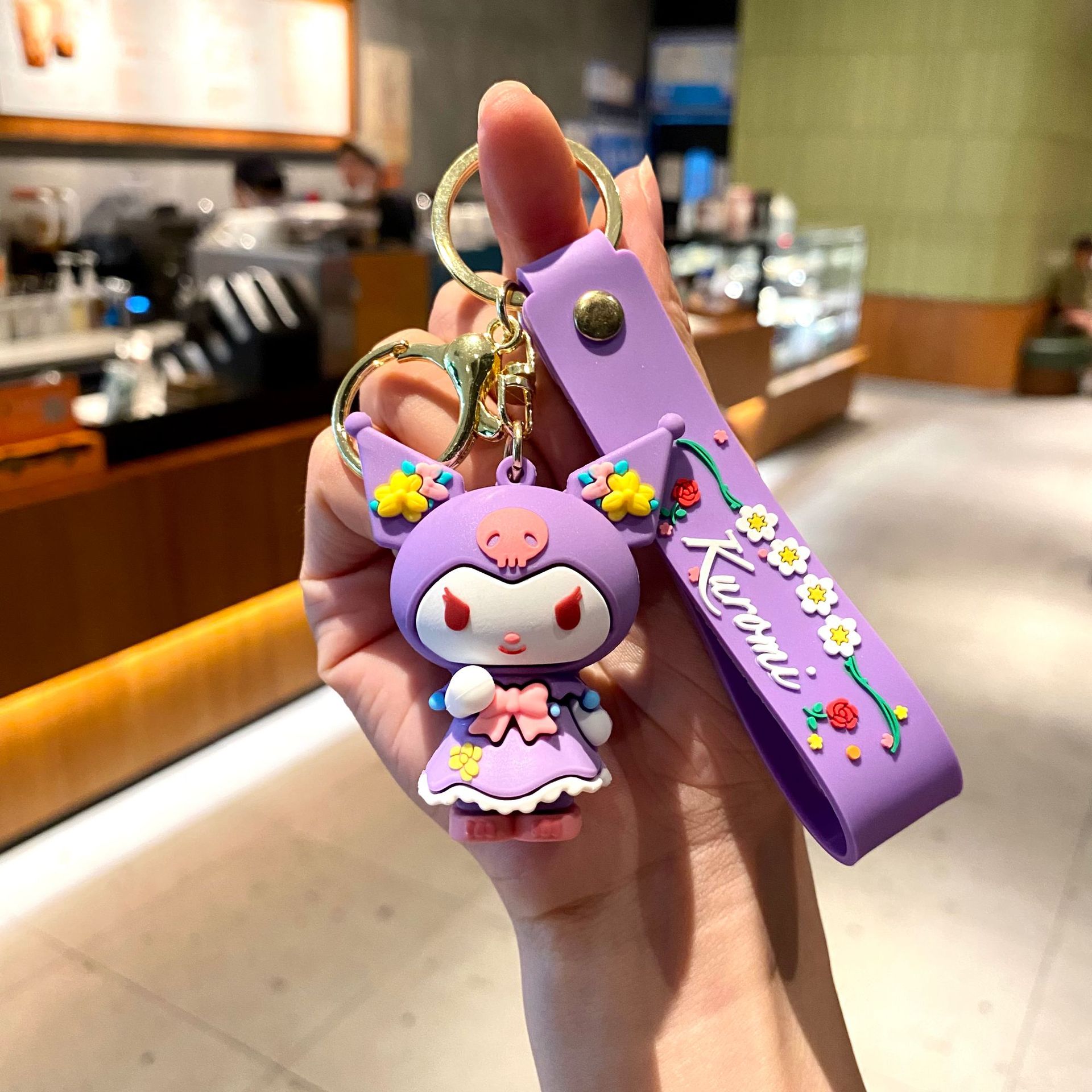 꽃 시즌 산리오 만화 열쇠 고리 Kulomi 귀여운 인형 가방 펜던트 자동차 열쇠 고리 작은 선물스토어 가기