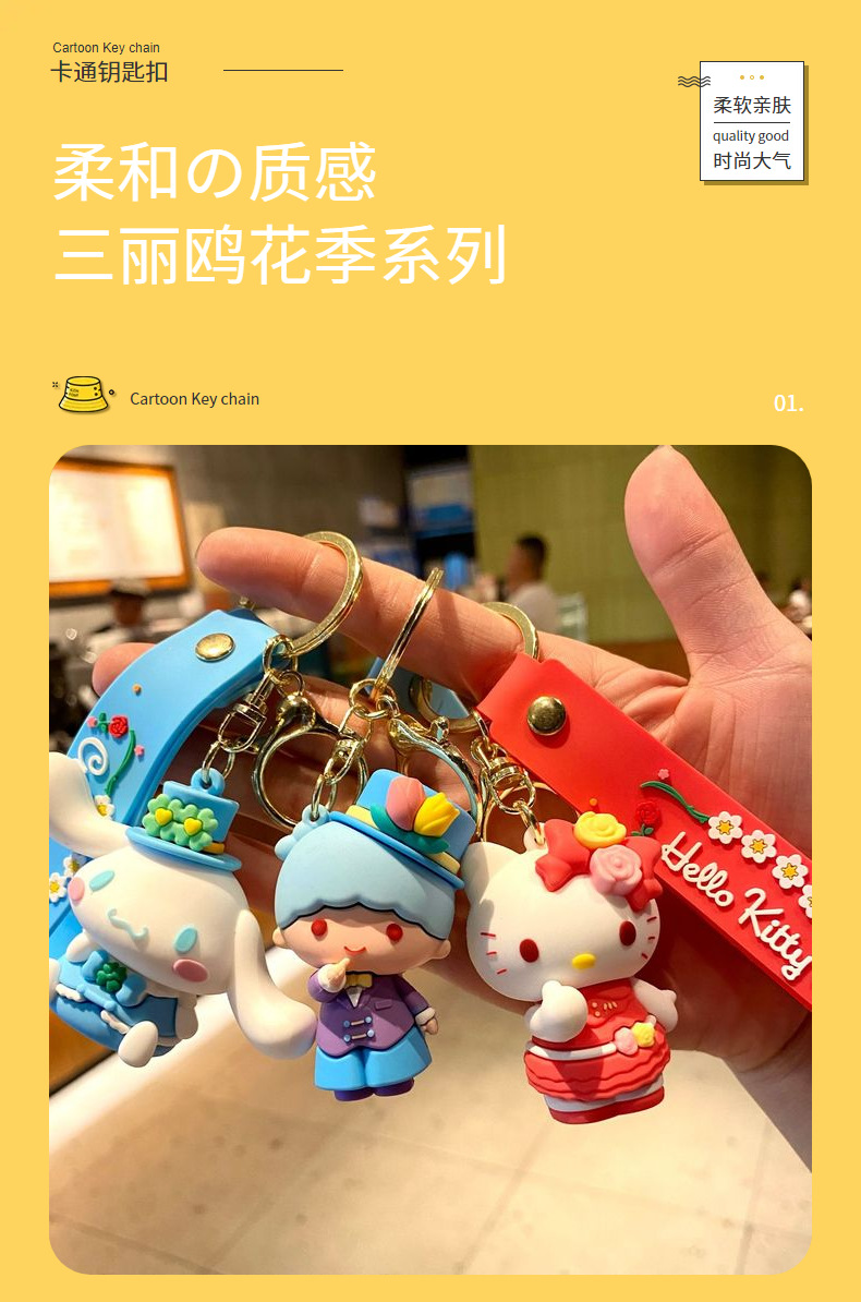 꽃 시즌 산리오 만화 열쇠 고리 Kulomi 귀여운 인형 가방 펜던트 자동차 열쇠 고리 작은 선물