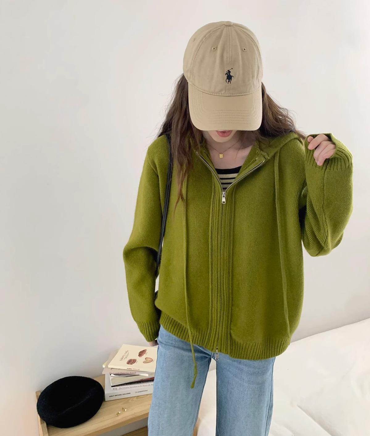 2024 봄 가을 겨울 후드 더블 지퍼 스웨터 코트 여성용 루즈 아우터웨어 게으른 스타일 두꺼운 스웨터 카디건스토어 가기