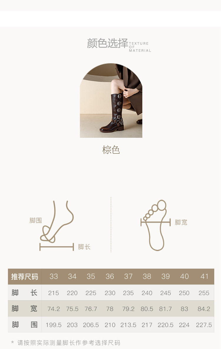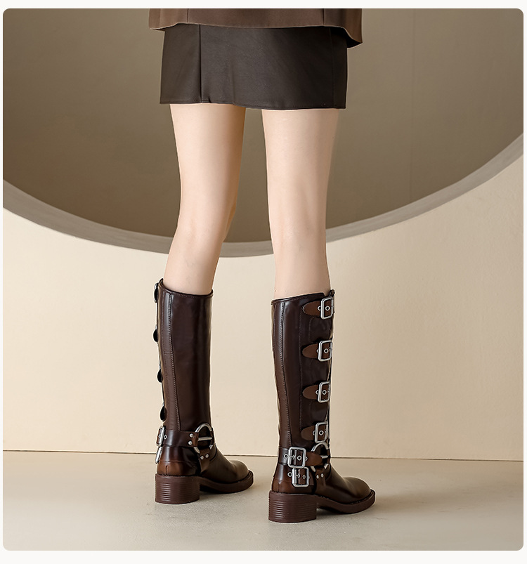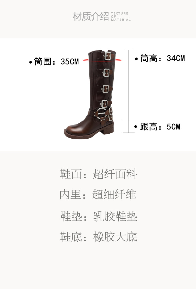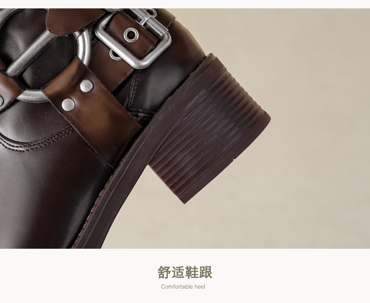 2023 가을 벨트 버클 두꺼운 발 뒤꿈치하지만 무릎 긴 부츠 영국 스타일 색상 닦아 웨스턴 데님 스타일 마틴 통통녀 확대