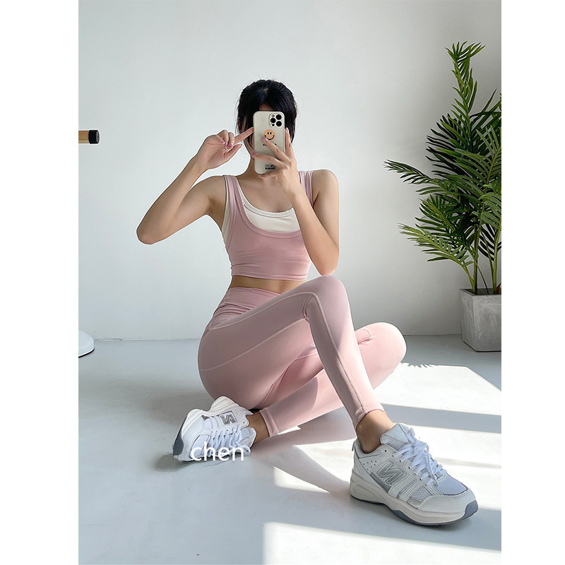 스트레치 스포츠 속옷 여성의 여름 야외 아침 실행 요가 세트 충격 방지 푸시 업 훈련 필라테스 피트니스 탑스토어 가기