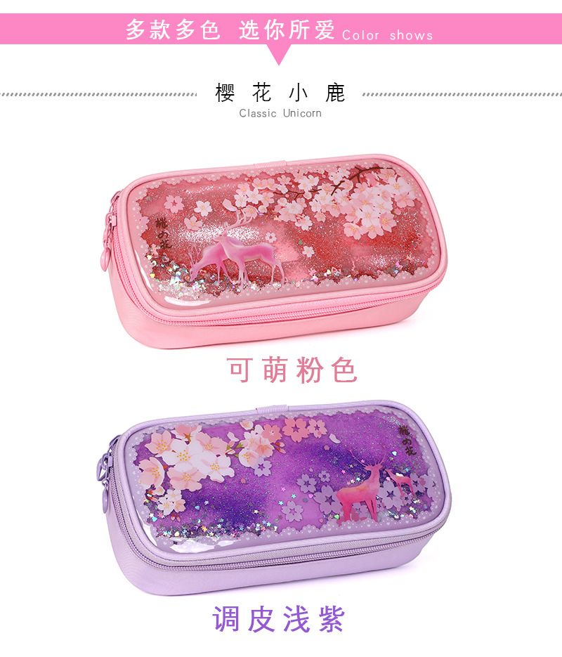 새로운 사슴 모양 흐르는 모래 필통, 창의적이고 심플한 대용량 문구함, 다기능 귀여운 만화 캐릭터 문구 가방