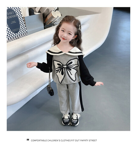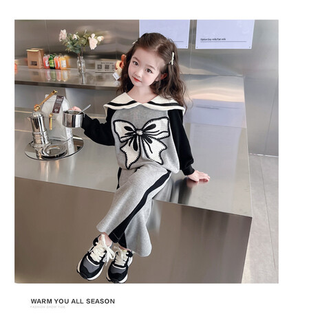 소녀의 인형 칼라 활 세트 2023 새로운 유행 어린이 의류 세련된 아기 소녀 투피스 가을과 겨울스토어 가기