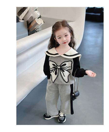 소녀의 인형 칼라 활 세트 2023 새로운 유행 어린이 의류 세련된 아기 소녀 투피스 가을과 겨울