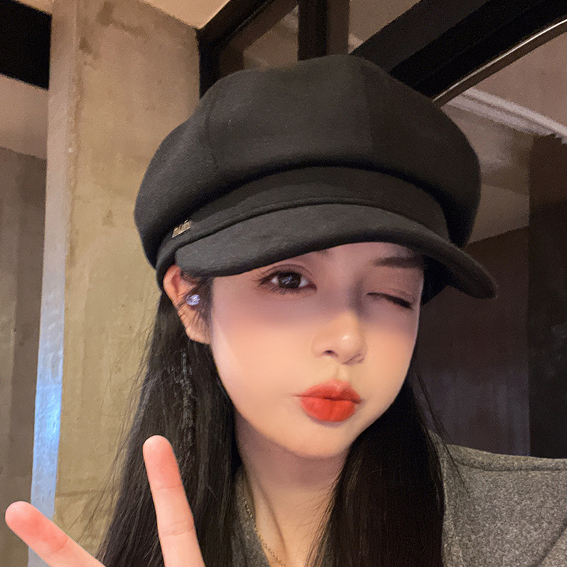 오리 혀 팔각형 모자 여성용 한국식 모든 경기 가을과 겨울 빈티지 샌딩 뉴스 보이 모자 얼굴을 보여주는 작은 패션 화가 베레모
