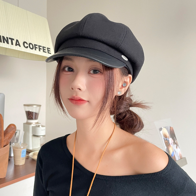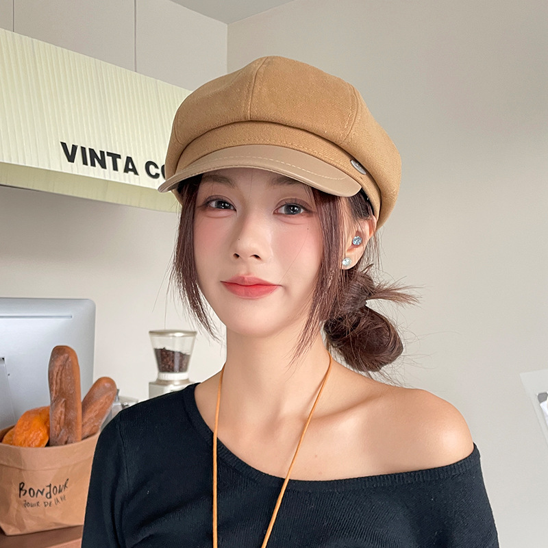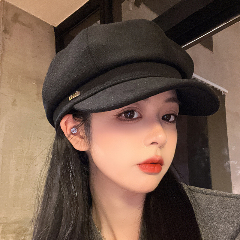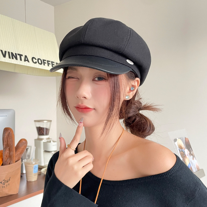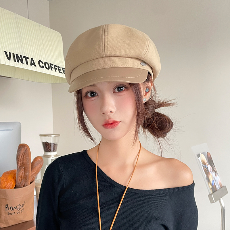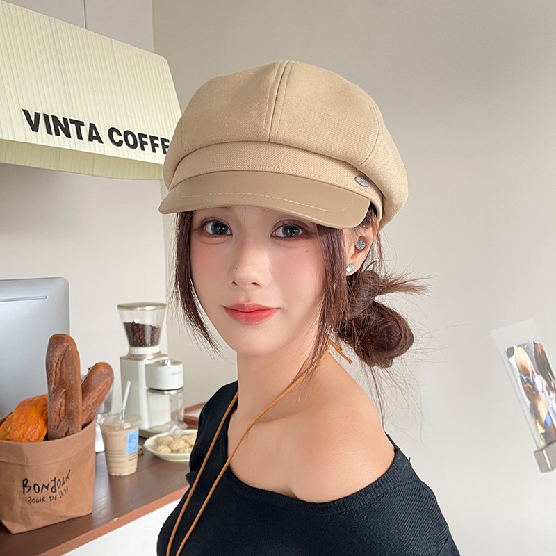 오리 혀 팔각형 모자 여성용 한국식 모든 경기 가을과 겨울 빈티지 샌딩 뉴스 보이 모자 얼굴을 보여주는 작은 패션 화가 베레모스토어 가기