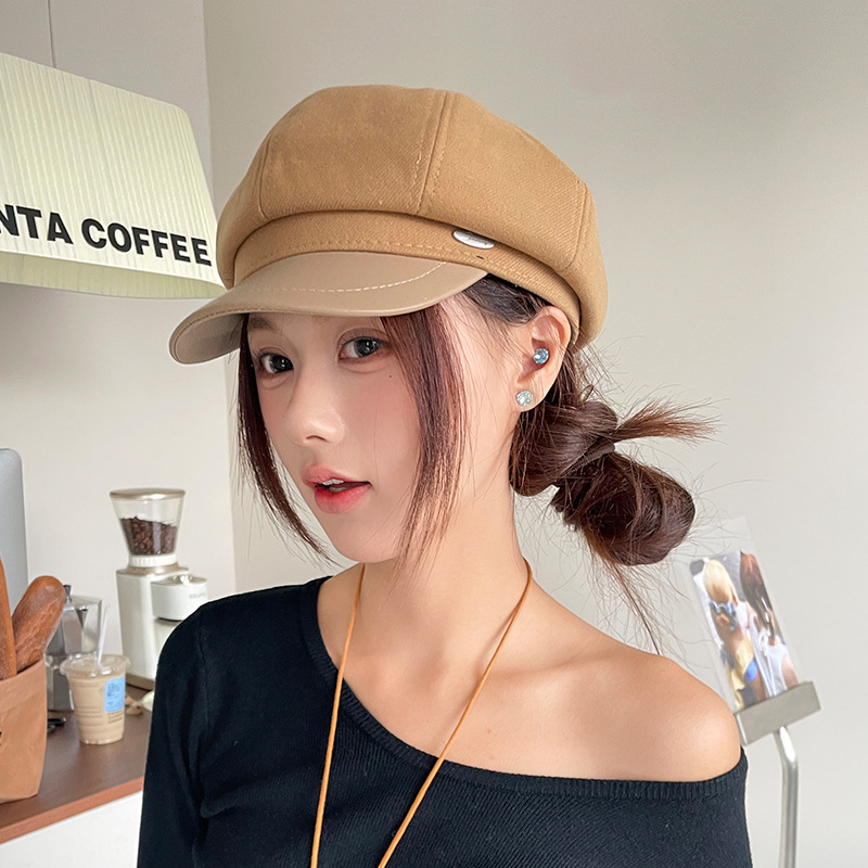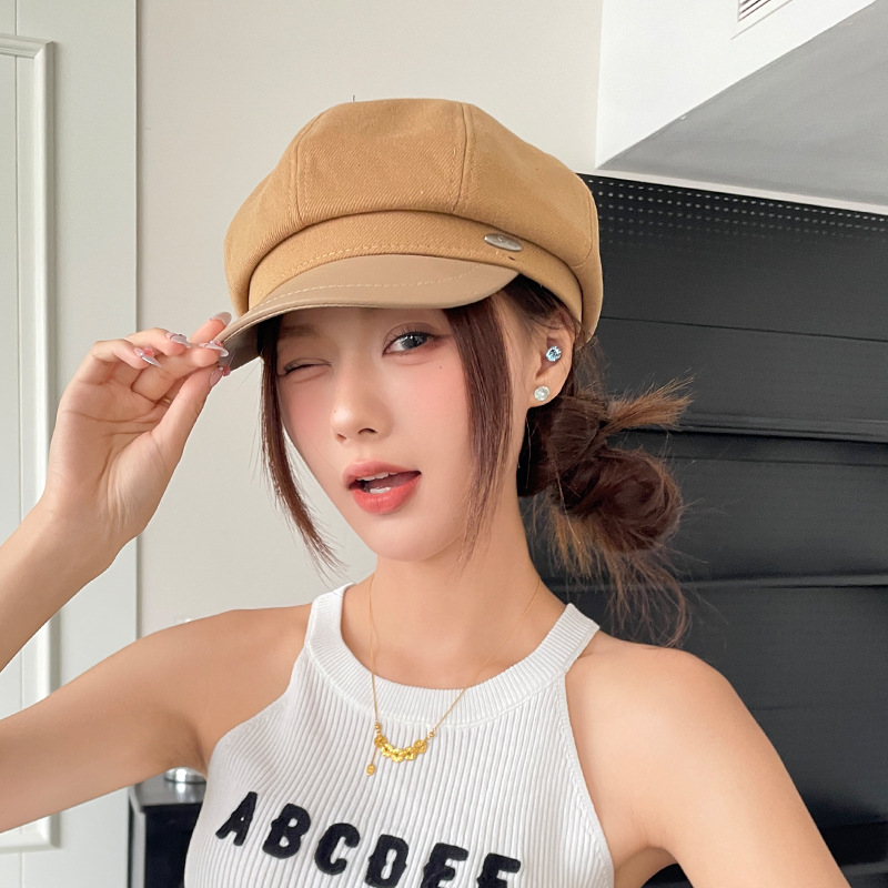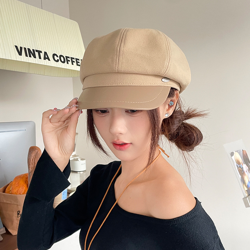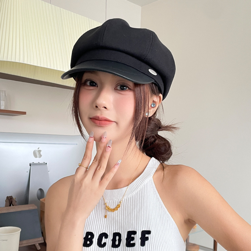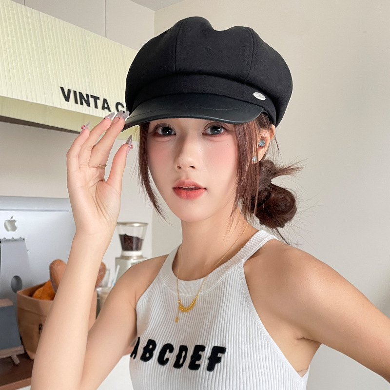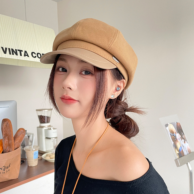 오리 혀 팔각형 모자 여성용 한국식 모든 경기 가을과 겨울 빈티지 샌딩 뉴스 보이 모자 얼굴을 보여주는 작은 패션 화가 베레모스토어 가기