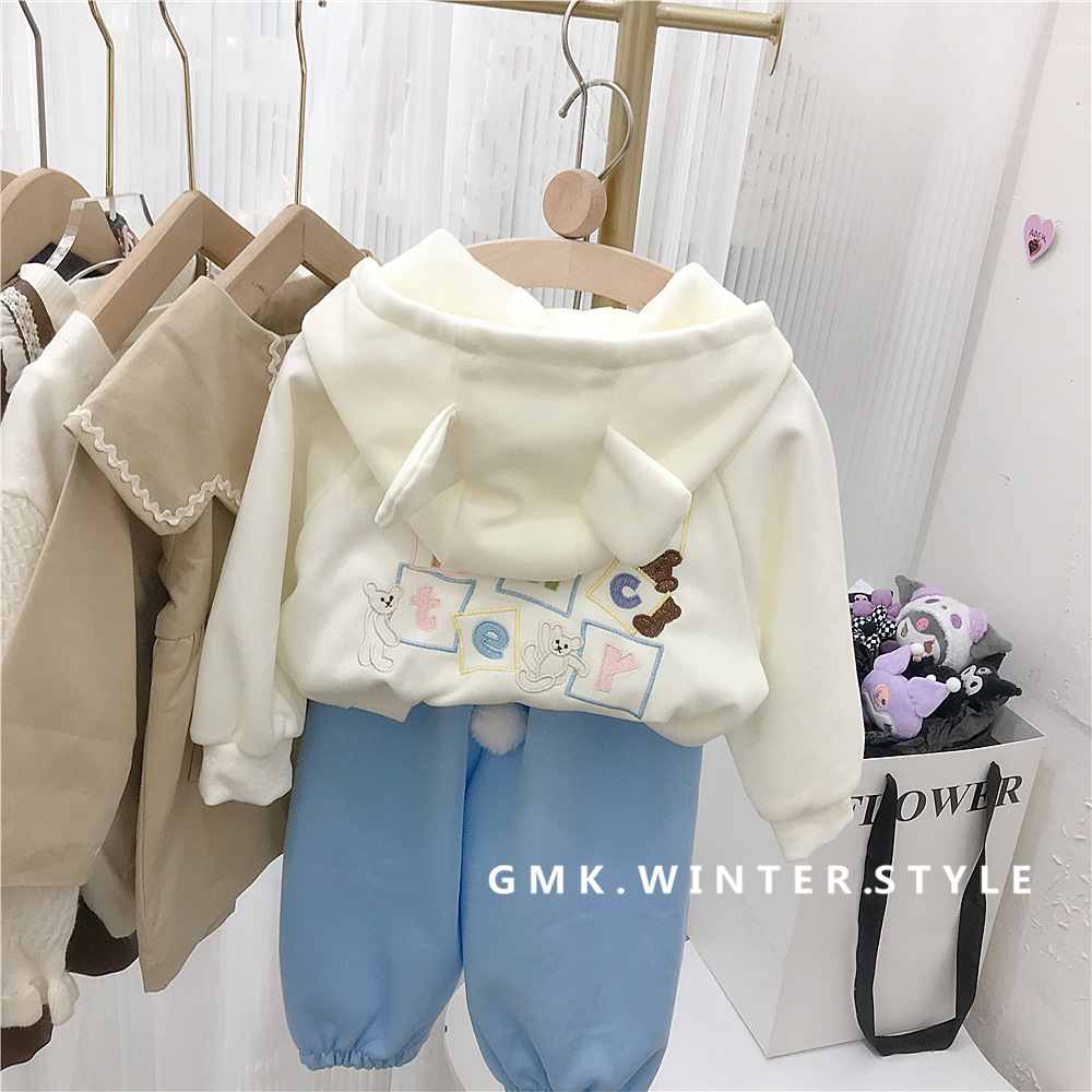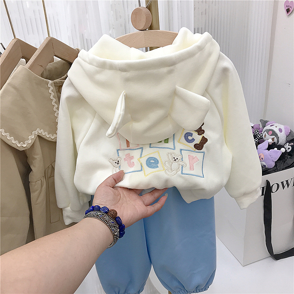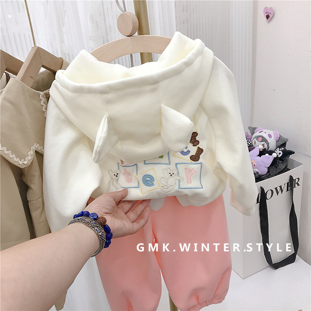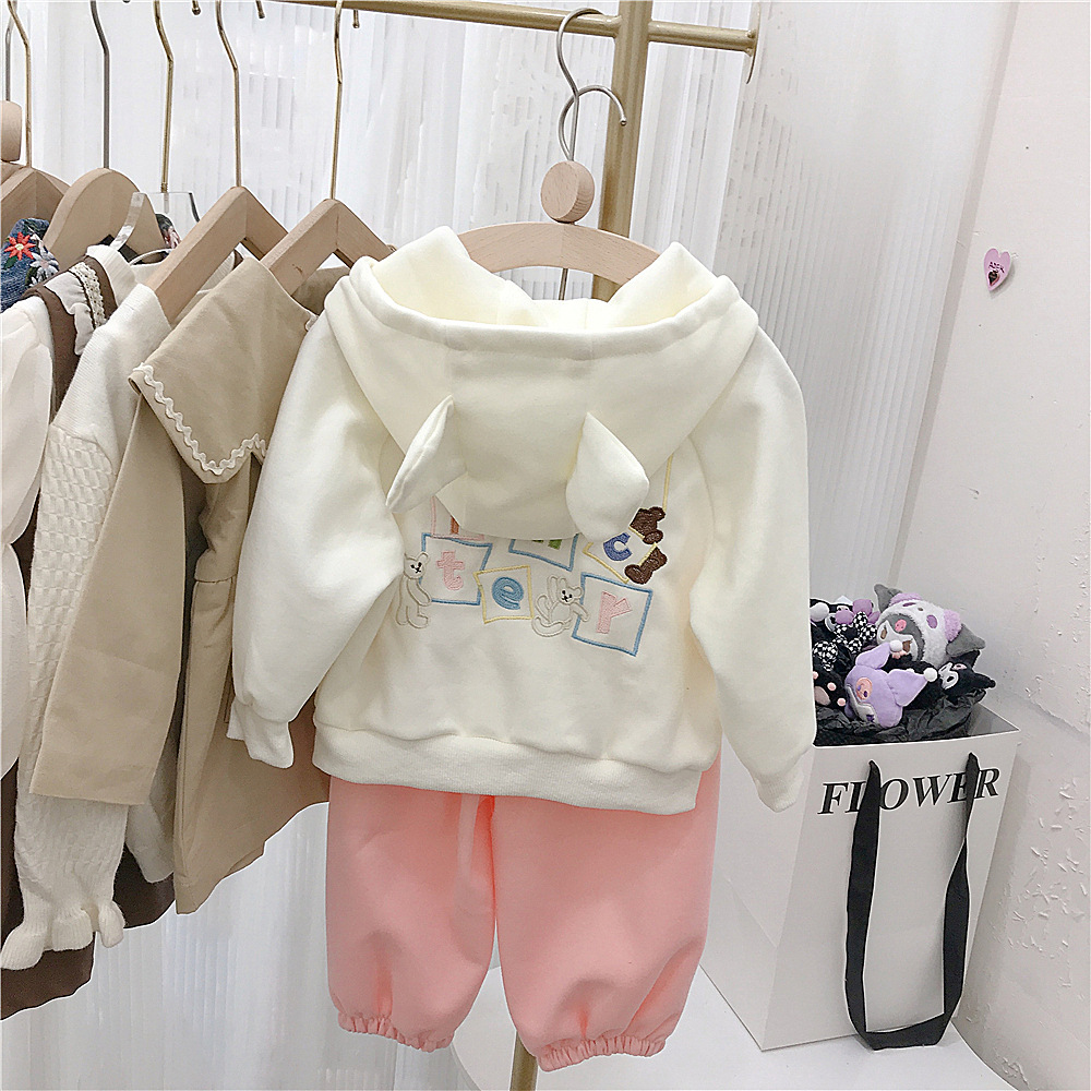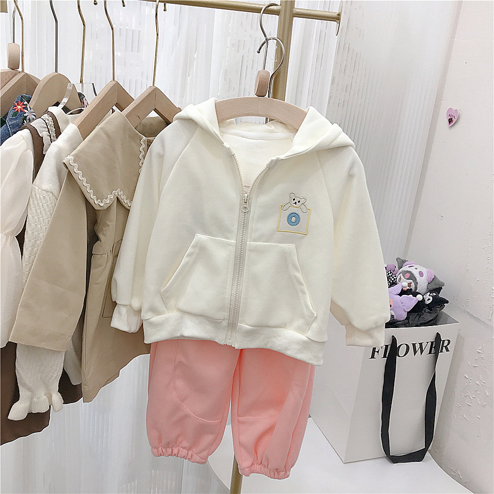 여아 세트 가을 새로운 아기 소녀 귀여운 후드 가디건 스웨터 핑크 스웨터 투피스 세트스토어 가기