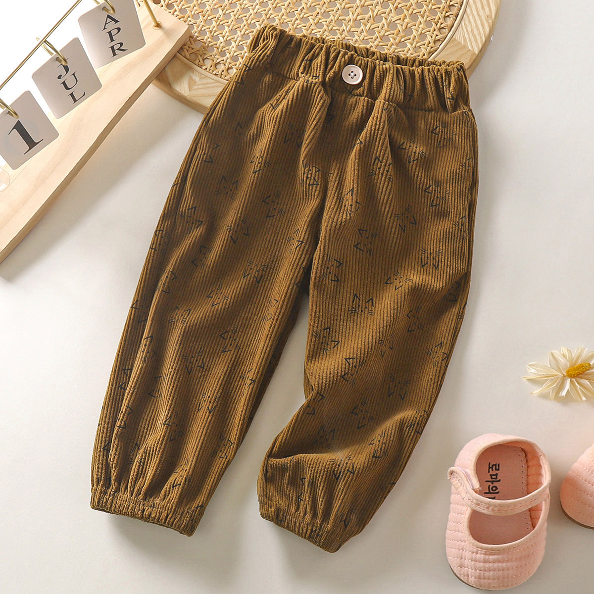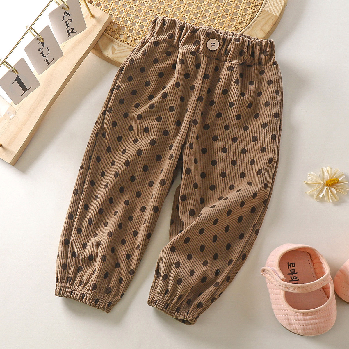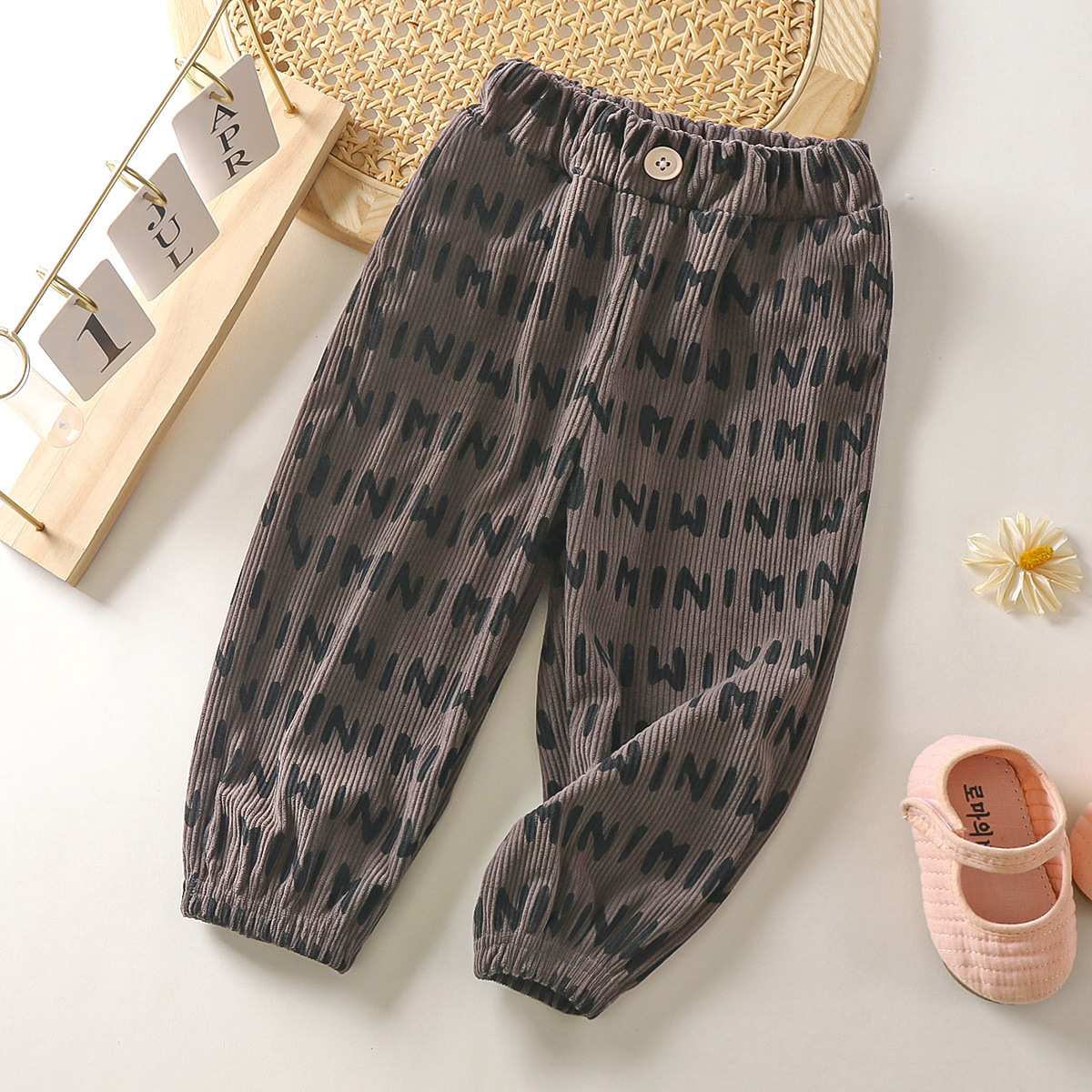 2025 새로운 가을, 겨울 어린이 바지 소년과 소녀 바지 아기 반점 바지 캐주얼 자카드 스웨트 팬츠 드롭 배송