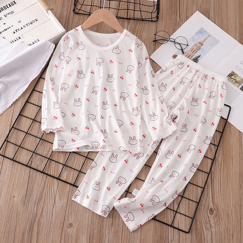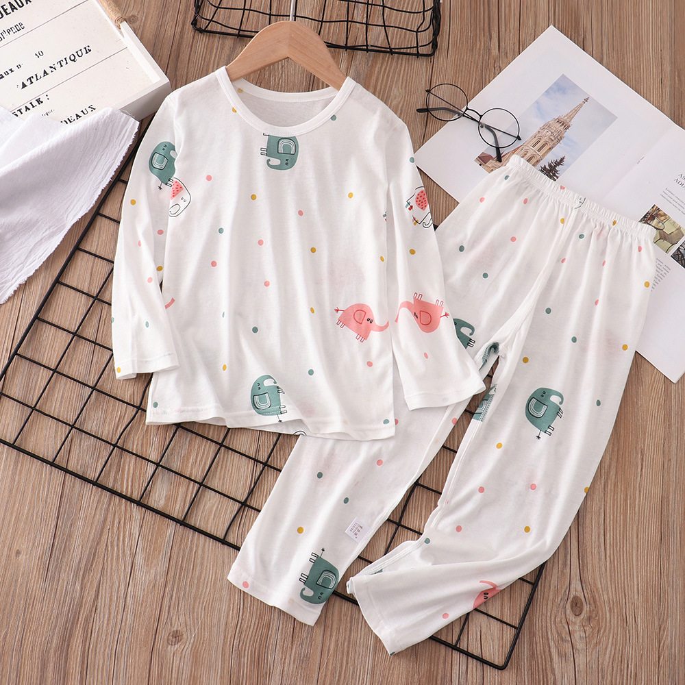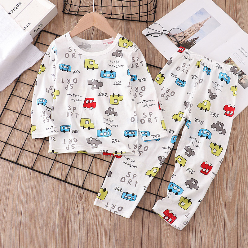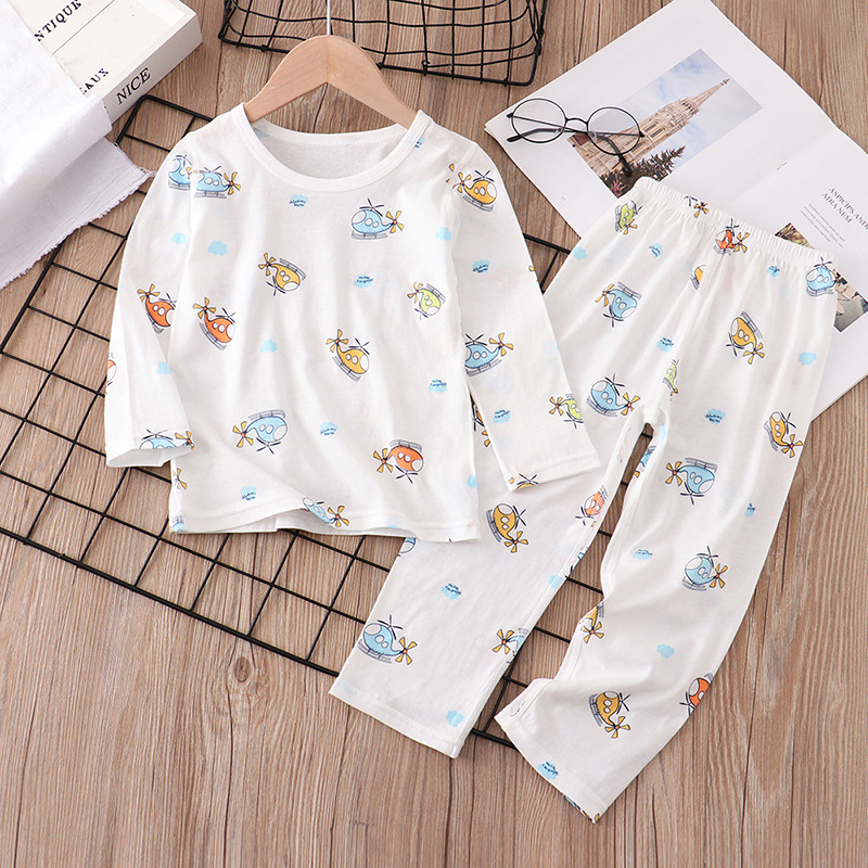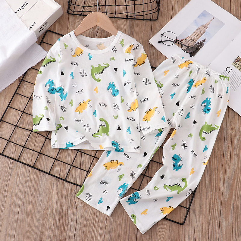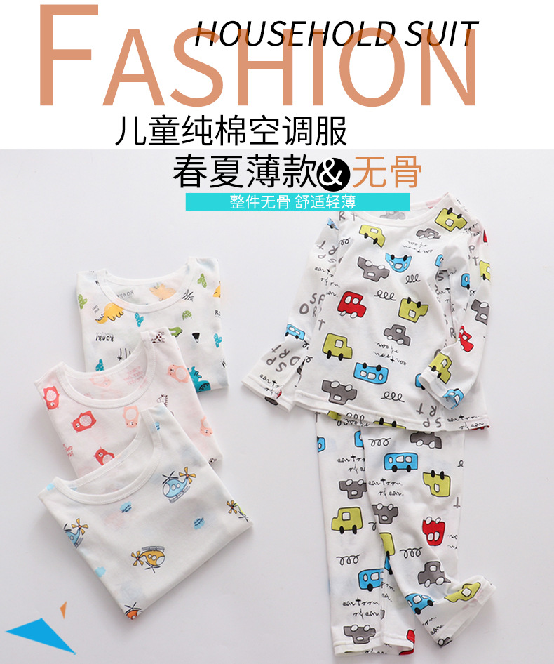 어린이 잠옷 여름 얇은 순면 아동 의류 소년 소녀 에어컨 옷 긴 소매 어린이 만화 가정 옷 세트스토어 가기