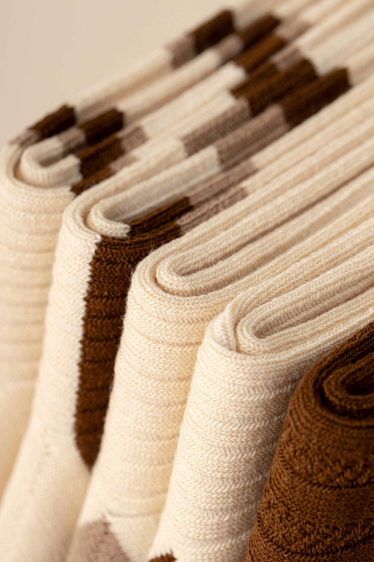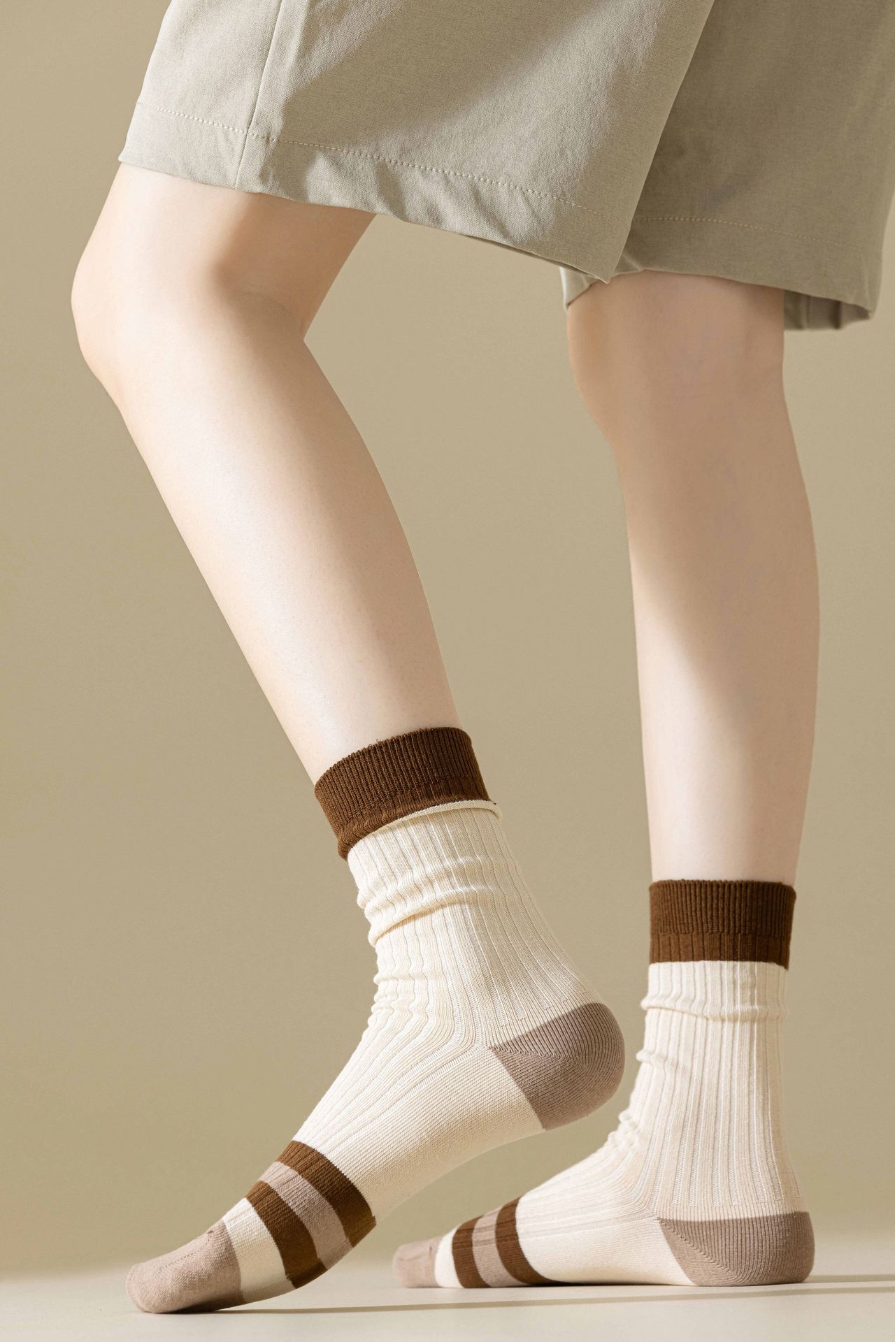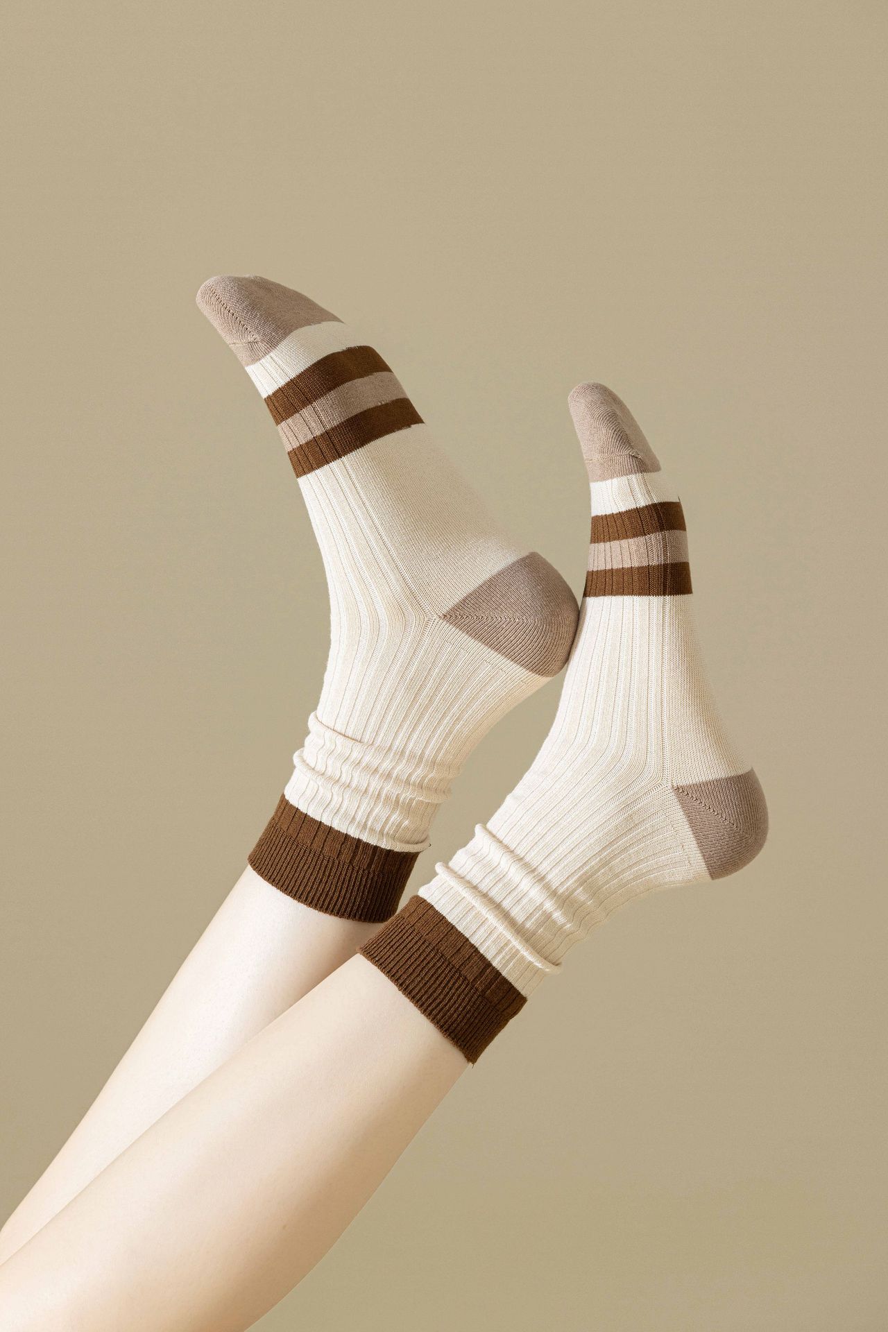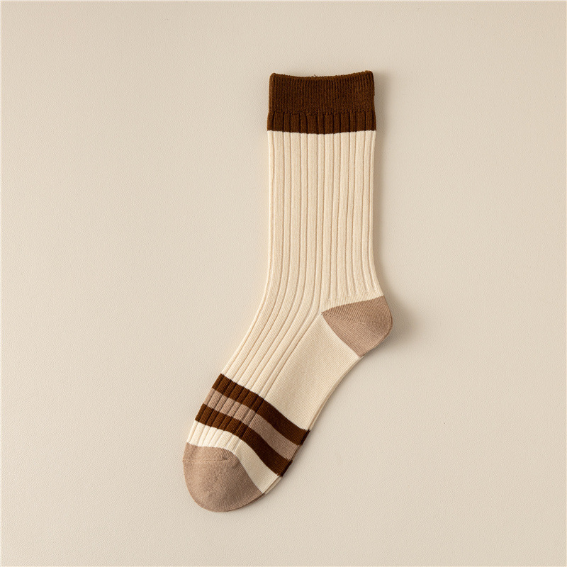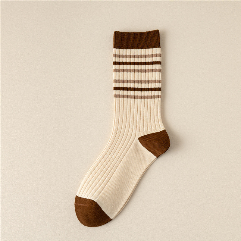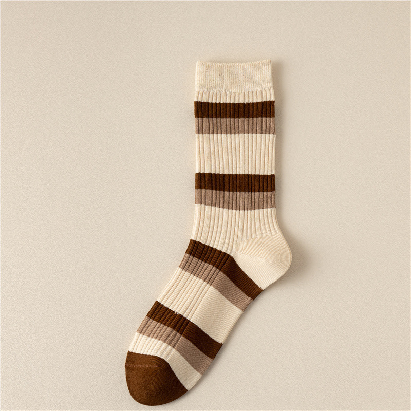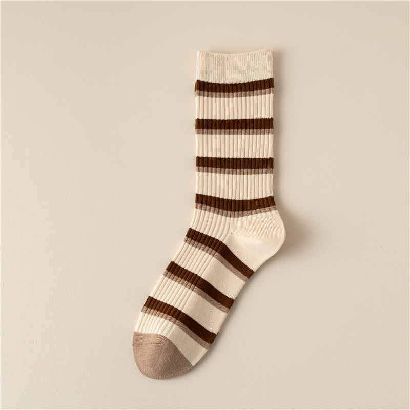 새로운 가을과 겨울 양말 질감 가정 여성 양말 부드러운 편안한 다크 브라운 줄무늬 양말