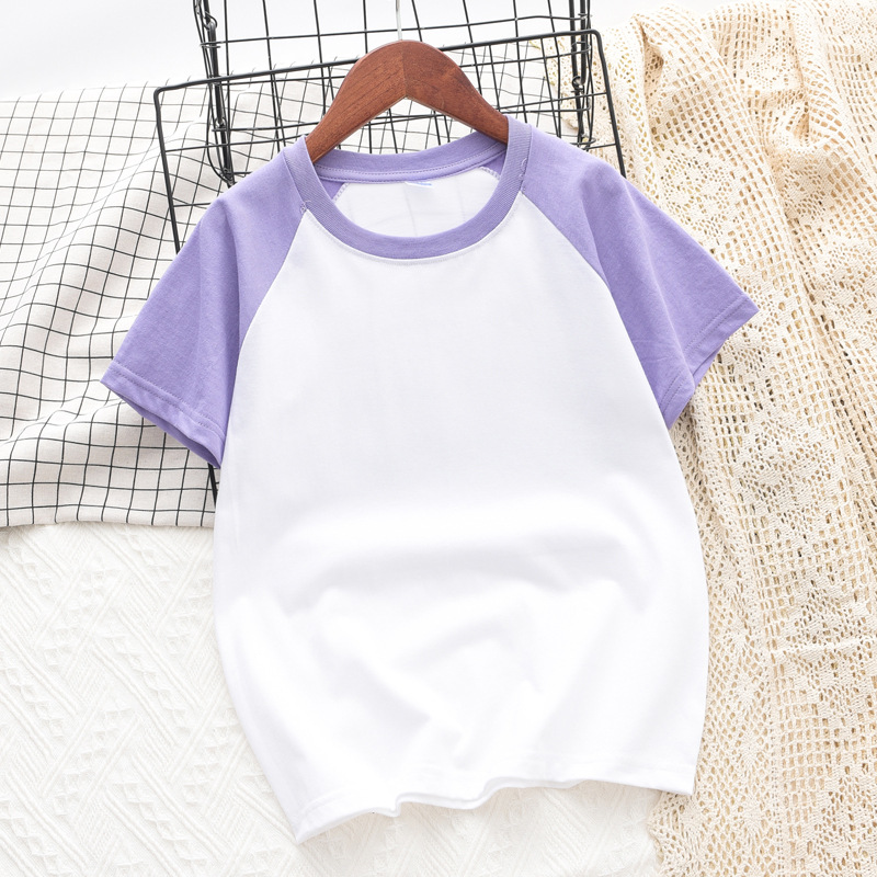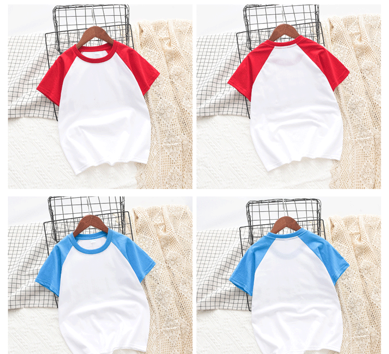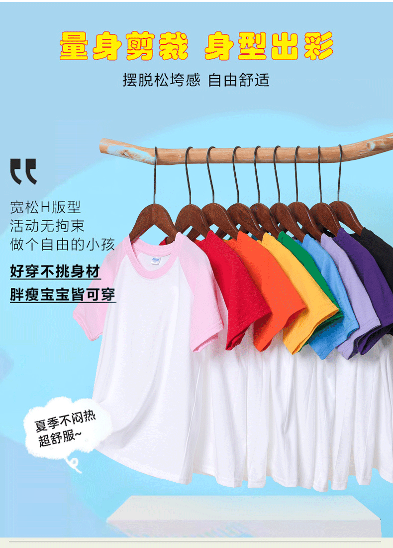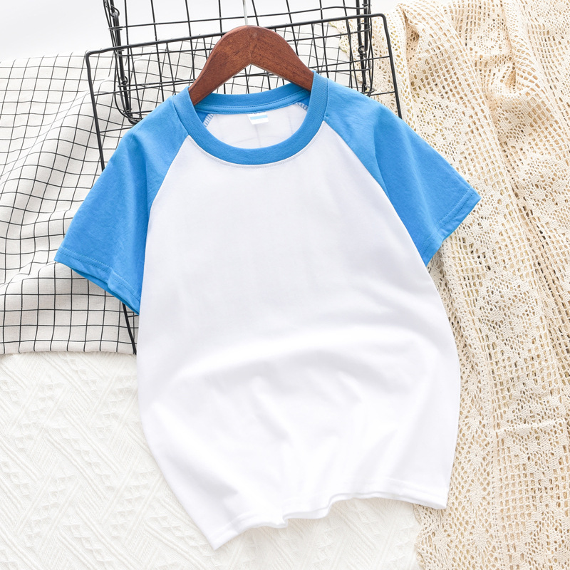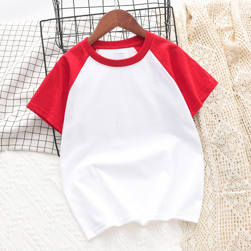소년 소녀 순면 티셔츠 단색 부모-아동 복장 도매 아동 라글란 반팔 티셔츠 유치원 졸업 공연 수업 옷스토어 가기
