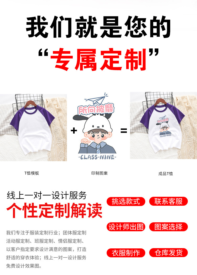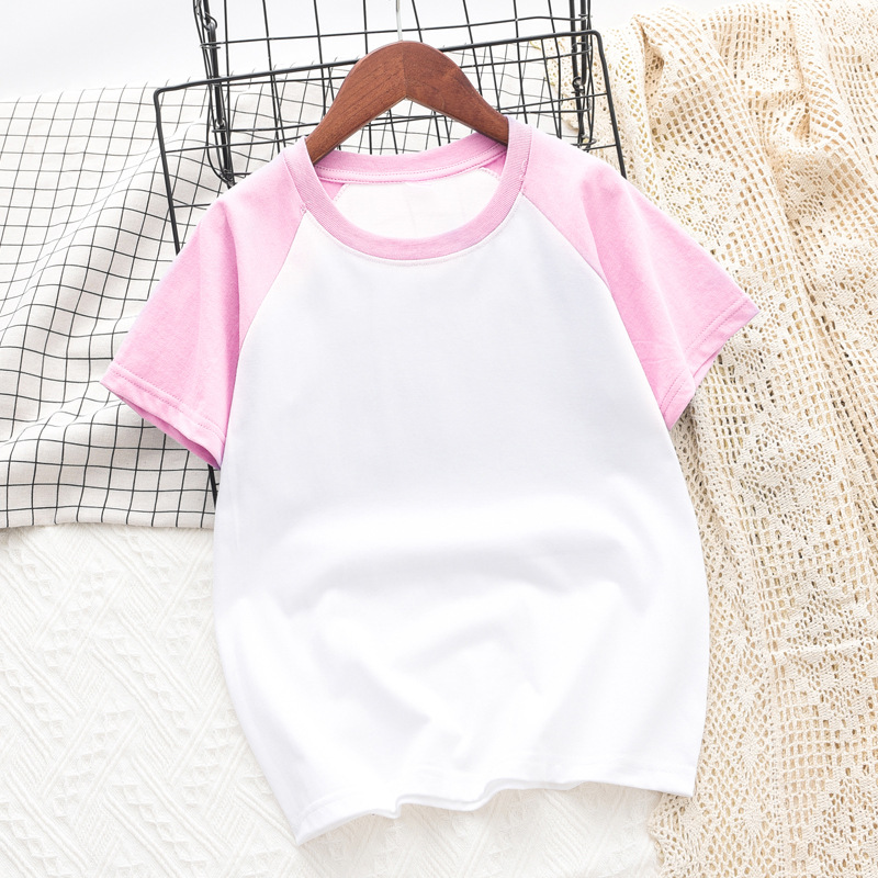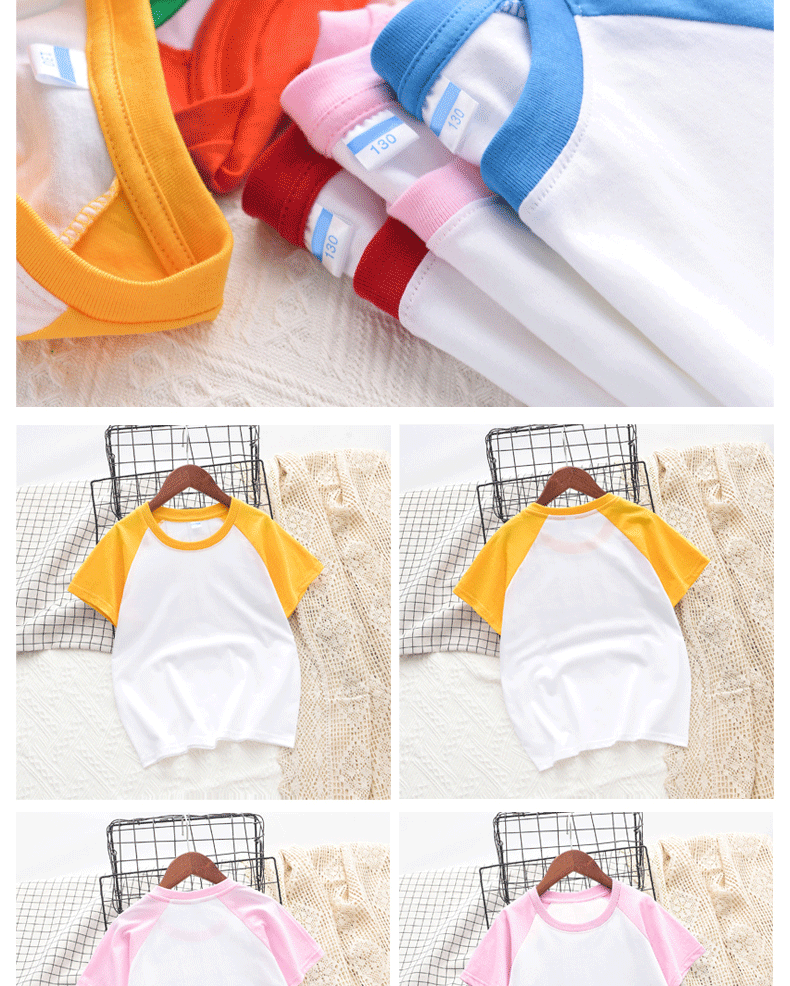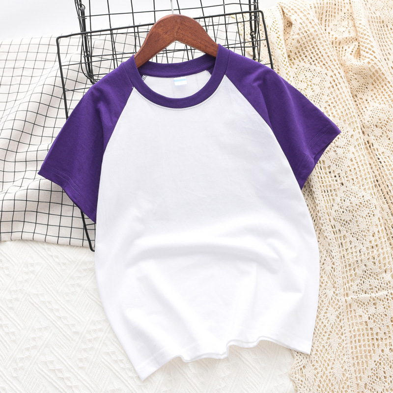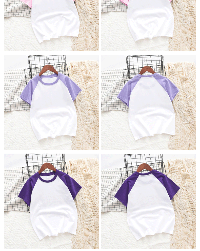 소년 소녀 순면 티셔츠 단색 부모-아동 복장 도매 아동 라글란 반팔 티셔츠 유치원 졸업 공연 수업 옷스토어 가기